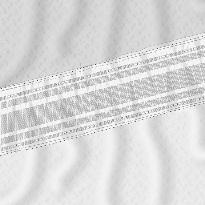 We use this predominantly in styles where it is desired to set down the heading tape, to provide a bunched appearance above the tape, with added interlining to give extra depth.