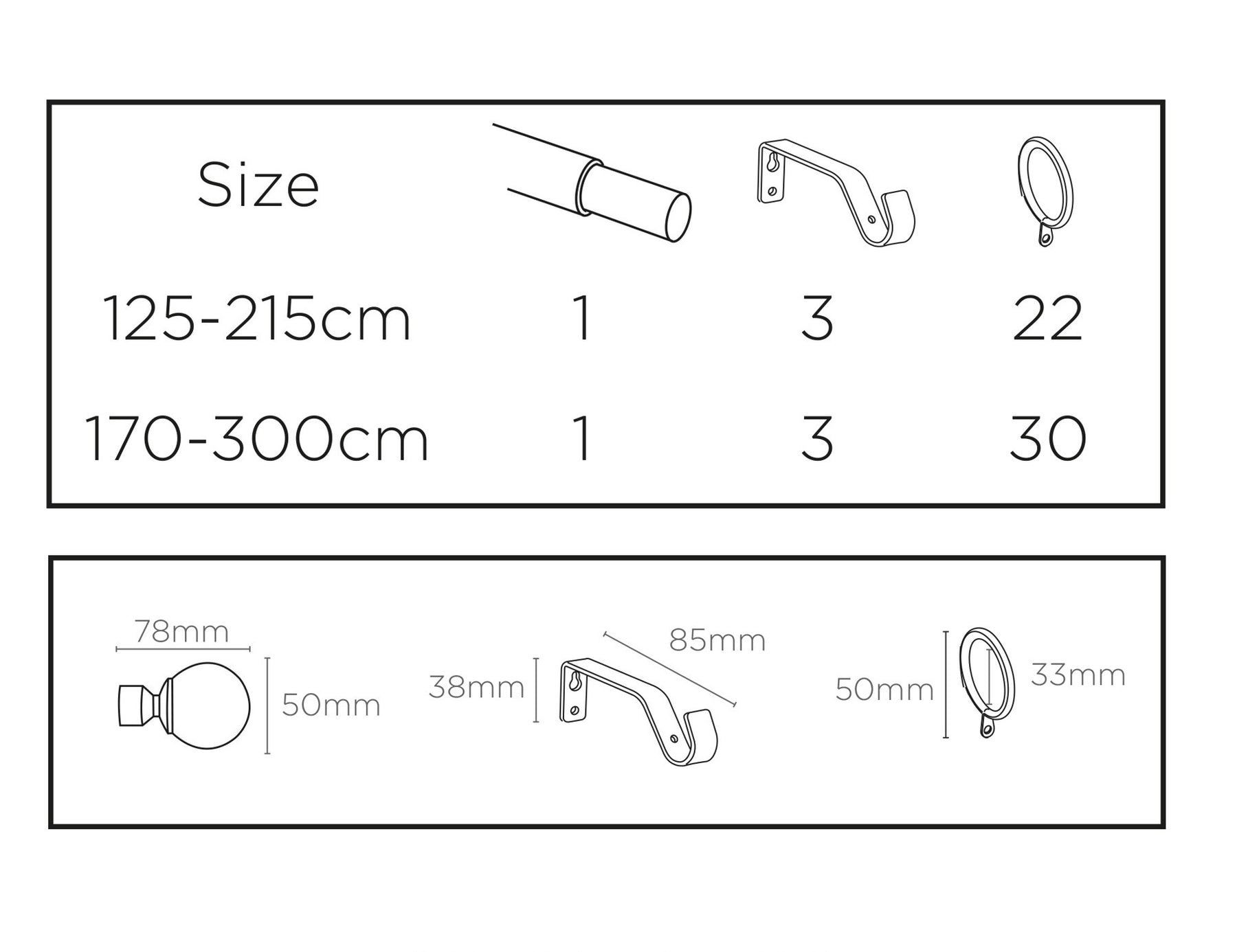 • Complete with fixed brackets and unlined rings