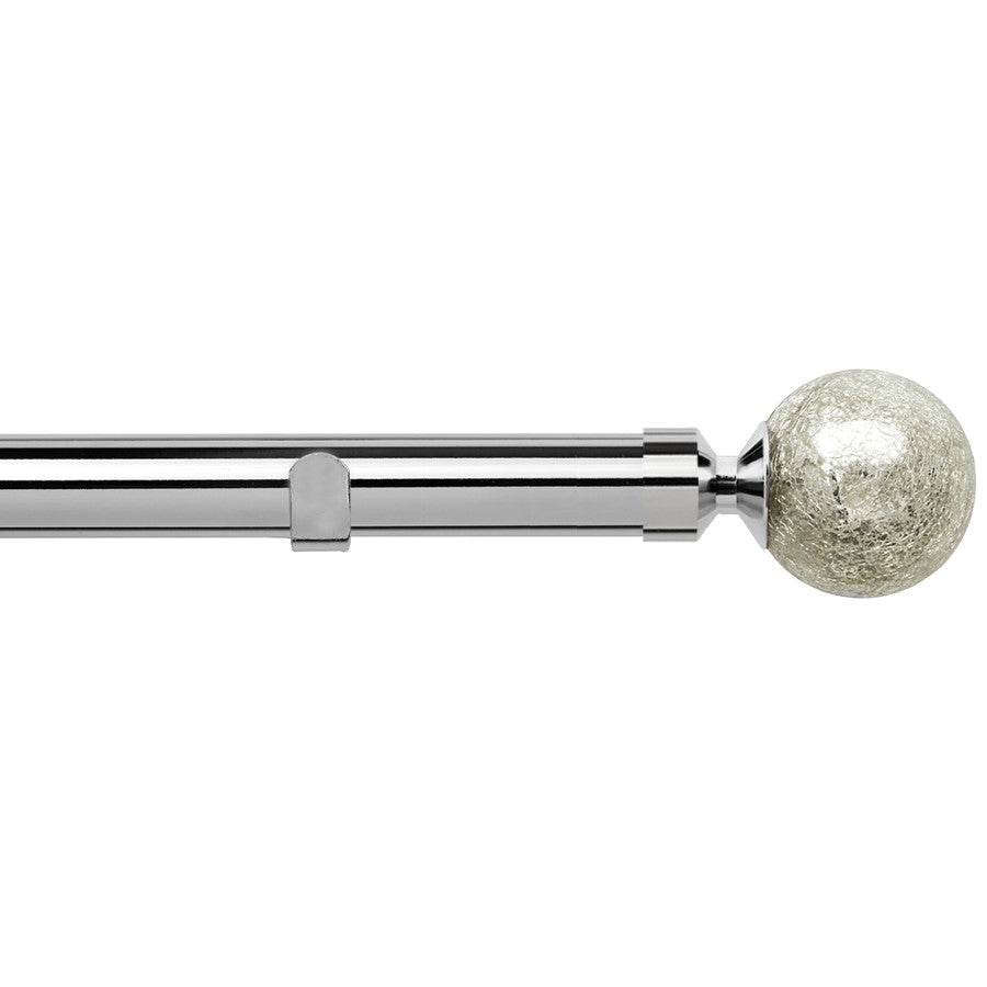 This simple Chrome curtain pole is stylishly finished with a crackled glass ball finial. This pole is perfect for eyelet curtains. The glass is highlighted with a beautiful metallic finish to give a classic timeless look. Please note this pole is an eyelet pole and if you require a curtain pole with rings please look at our Curtain Poles category to view all our poles with rings included.