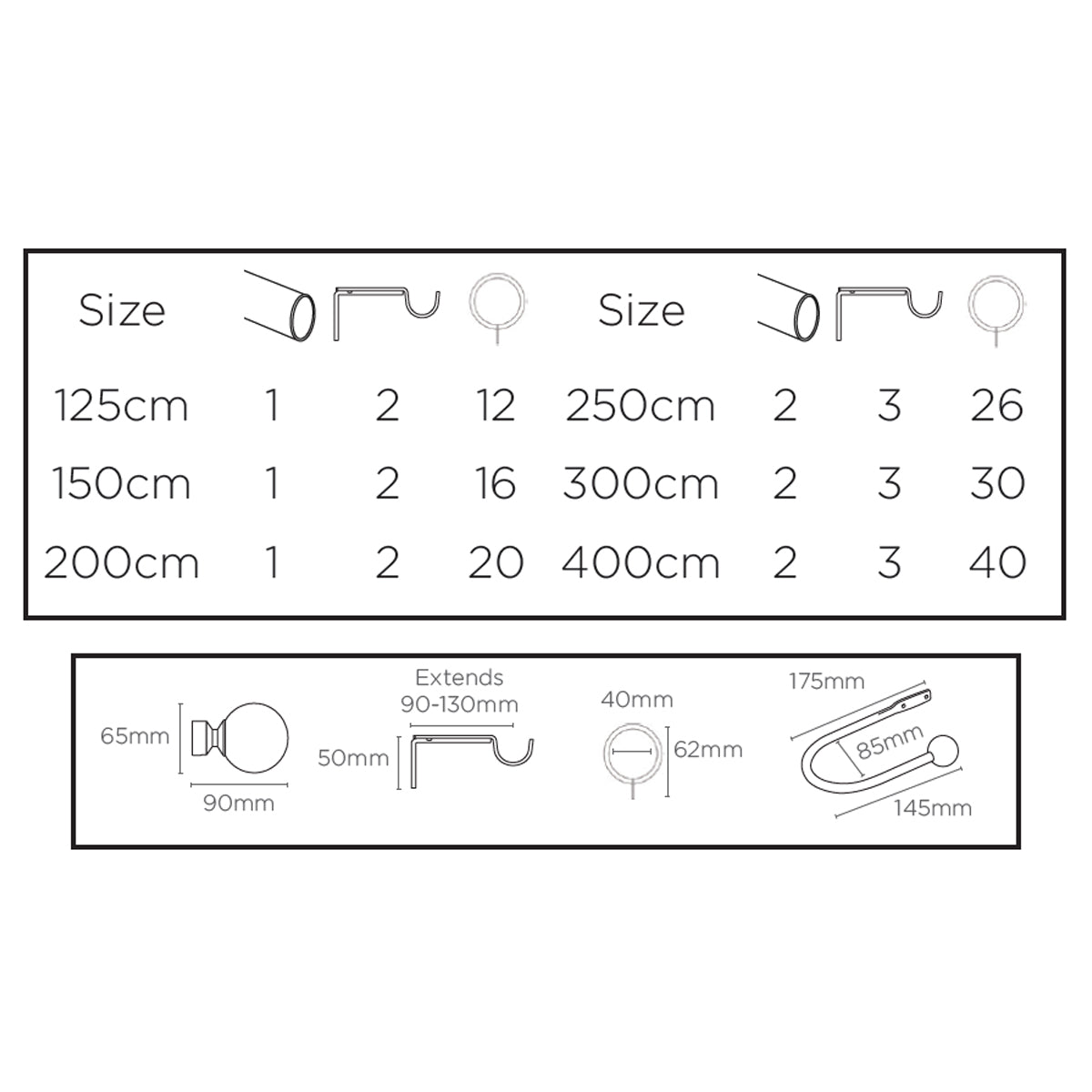Comes complete with all the required fixings, plus extra rings and Ball Holdbacks should you need them. The adjustable bracket lets you modify the pole depth, making it ideal for eyelet headings that need to open back easily.