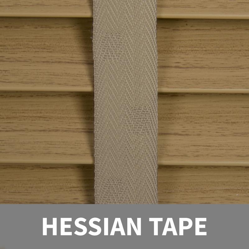 This alternative to real wood is made from a convincing high quality PVC and is the perfect solution for bathrooms and kitchens or areas of high moisture. Here is the 35mm faux wood slat size blind which comes complete with a wide choice of 25mm herringbone tape options to enhance the look with a shot of colour. The Faux Wood range is also available with a textured fine grain slat along with a wider 50mm slat option and a 35mm tape variation.