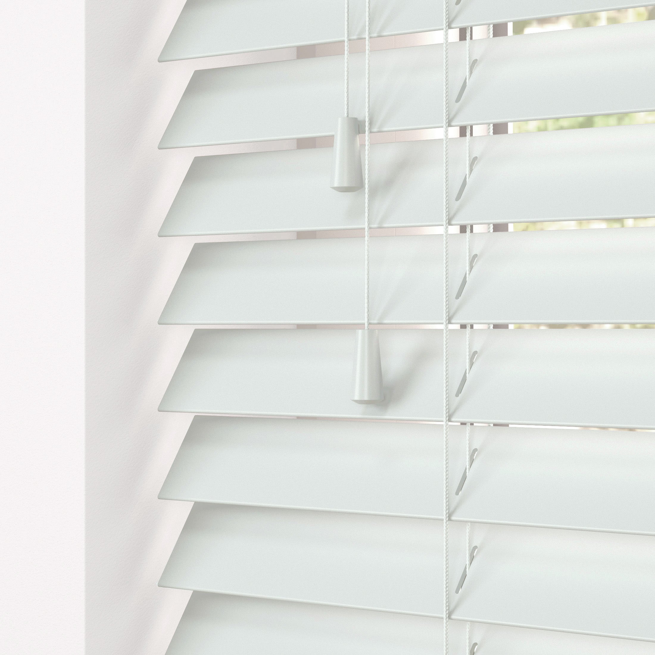 This blind has a 50mm slat size. Choose from a selection of stylish tones, from clean white and cream to natural wood colours or a textured fine grain slat.