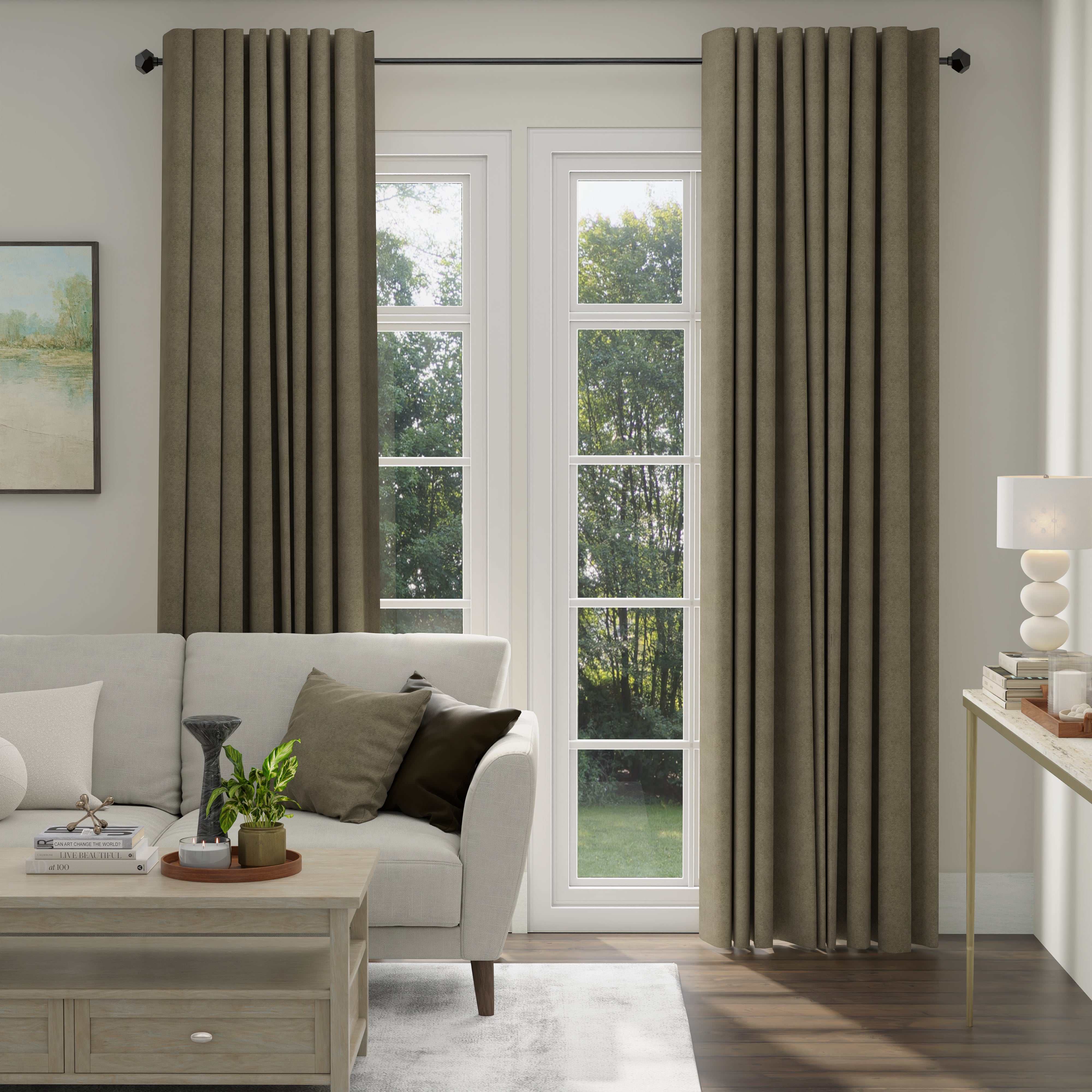 • Beige curtains