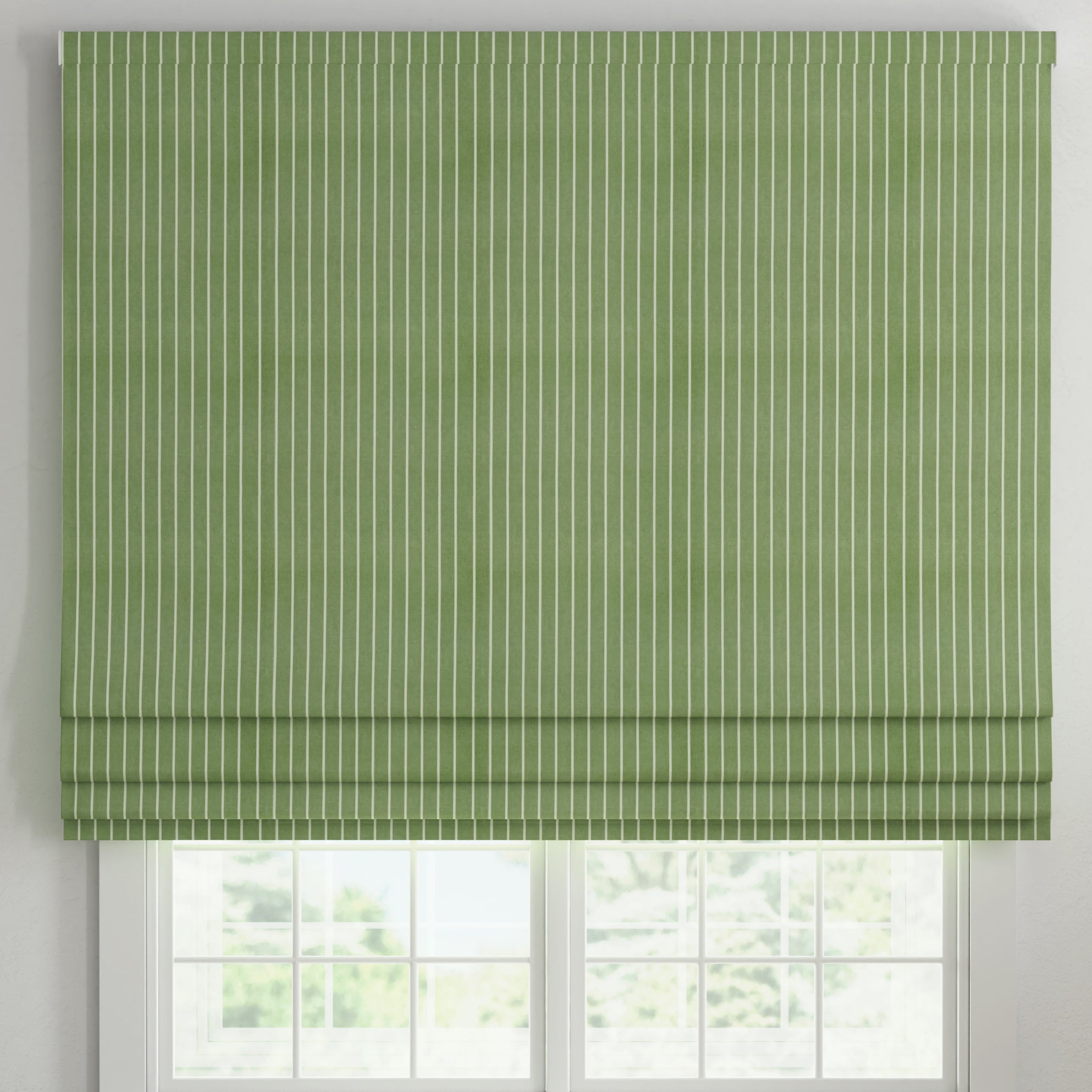 This made-to-measure Roman blind from the ANTE DECOR range features a refined, premium fabric that enhances any interior. Its delicate slim stripes overlay a soft, tonal watercolour background in a soothing green shade, ideal for crafting a timeless and peaceful ambiance. Crafted from 100% cotton, this fabric offers both elegance and versatility, making it simple to coordinate with other textiles for a cohesive design. An essential choice for professionals, it’s perfectly suited for Roman blinds and curtains.