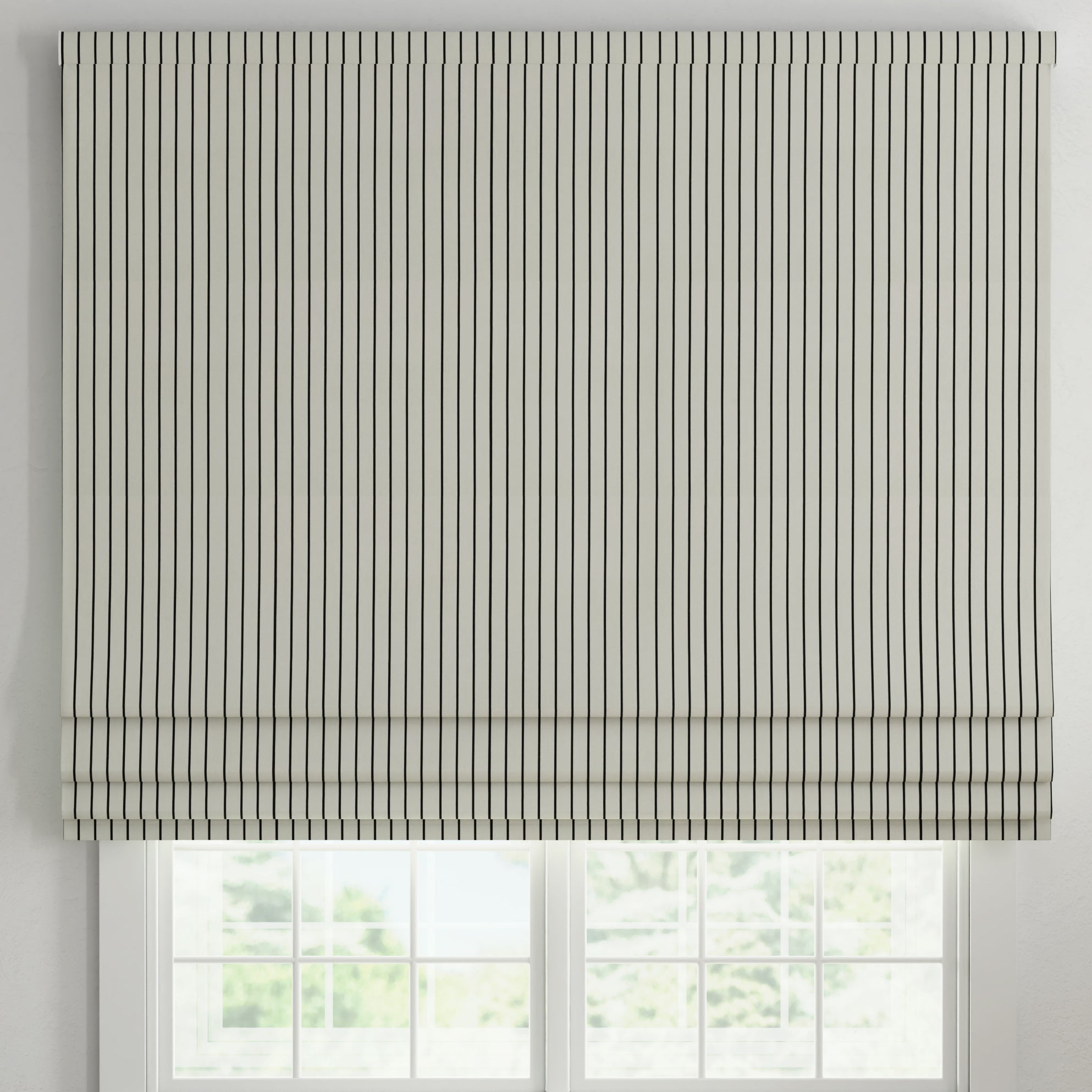 This 100% cotton fabric is perfect for creating a seamless, classic look in any room of your home. The slim stripes on a tonal watercoloured painterly background add a touch of elegance and style, while also allowing the fabric to easily blend with other fabrics for a cohesive look. With its versatile use for romans and curtains, it's sure to make your home look clean and crisp with its beautiful white and striking black stripes.