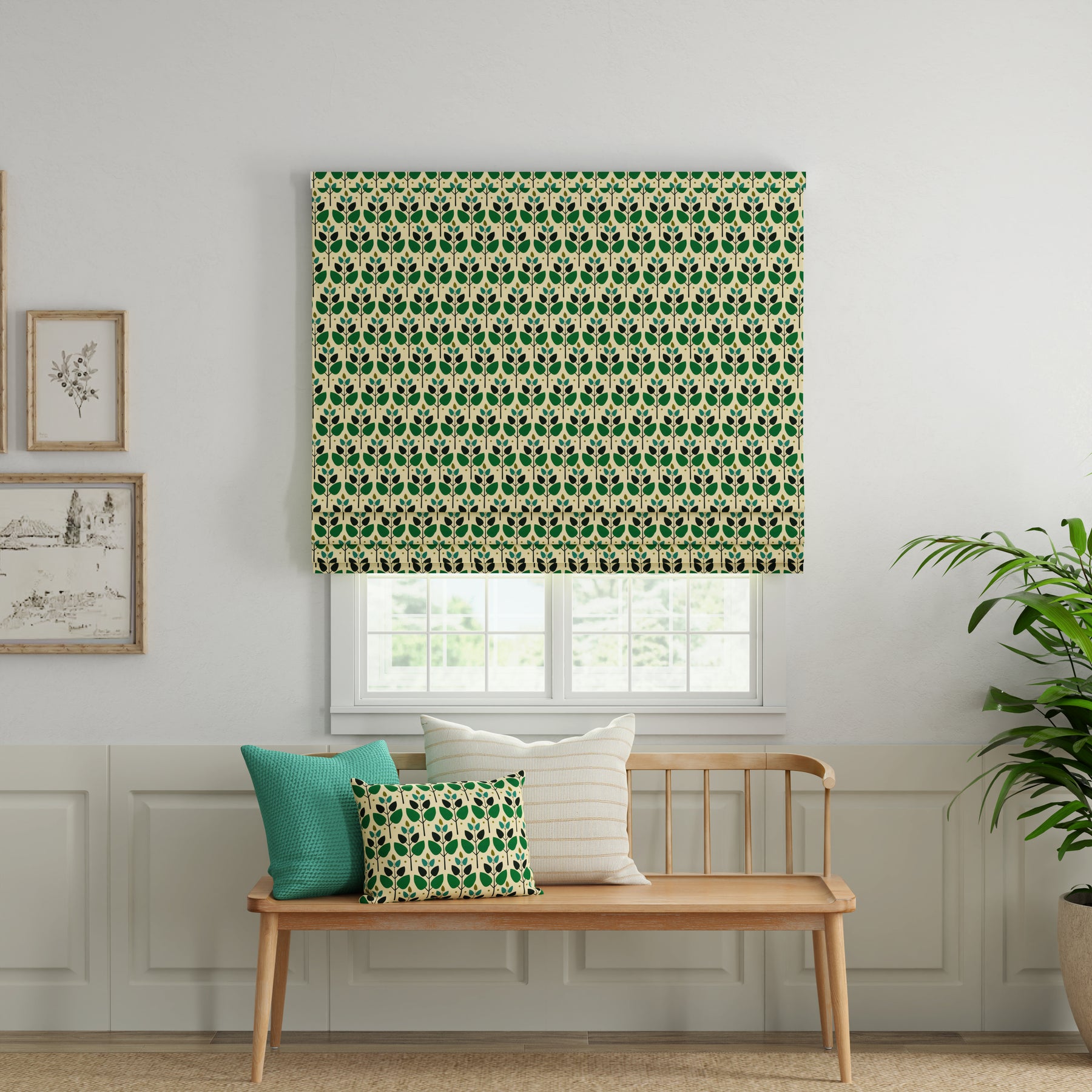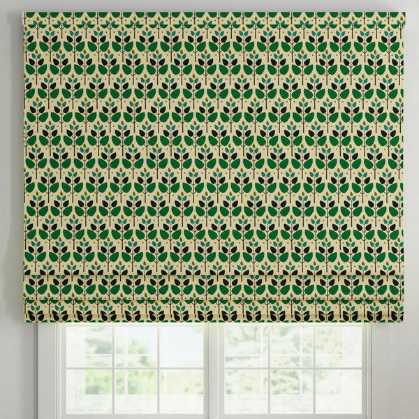This made-to-measure Roman blind from the ANTE DECOR range features the Cadiz Printed Cotton Fabric, a classic and enduring option. Showcasing a repeated tree pattern with coordinating colourful leaves on a warm backdrop, this vintage-inspired design offers a sophisticated visual appeal. Experience its elegance in person.