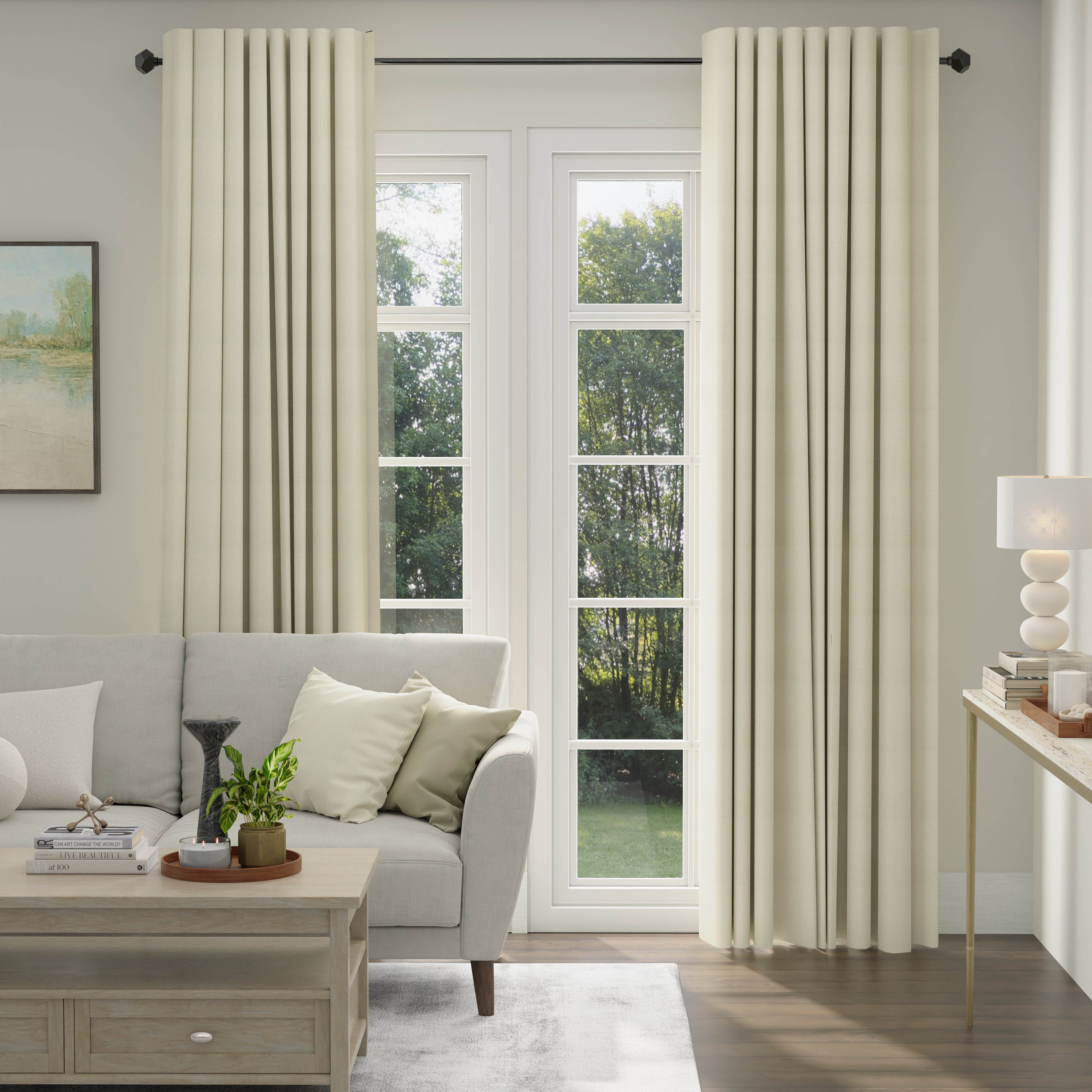 • Beige curtains