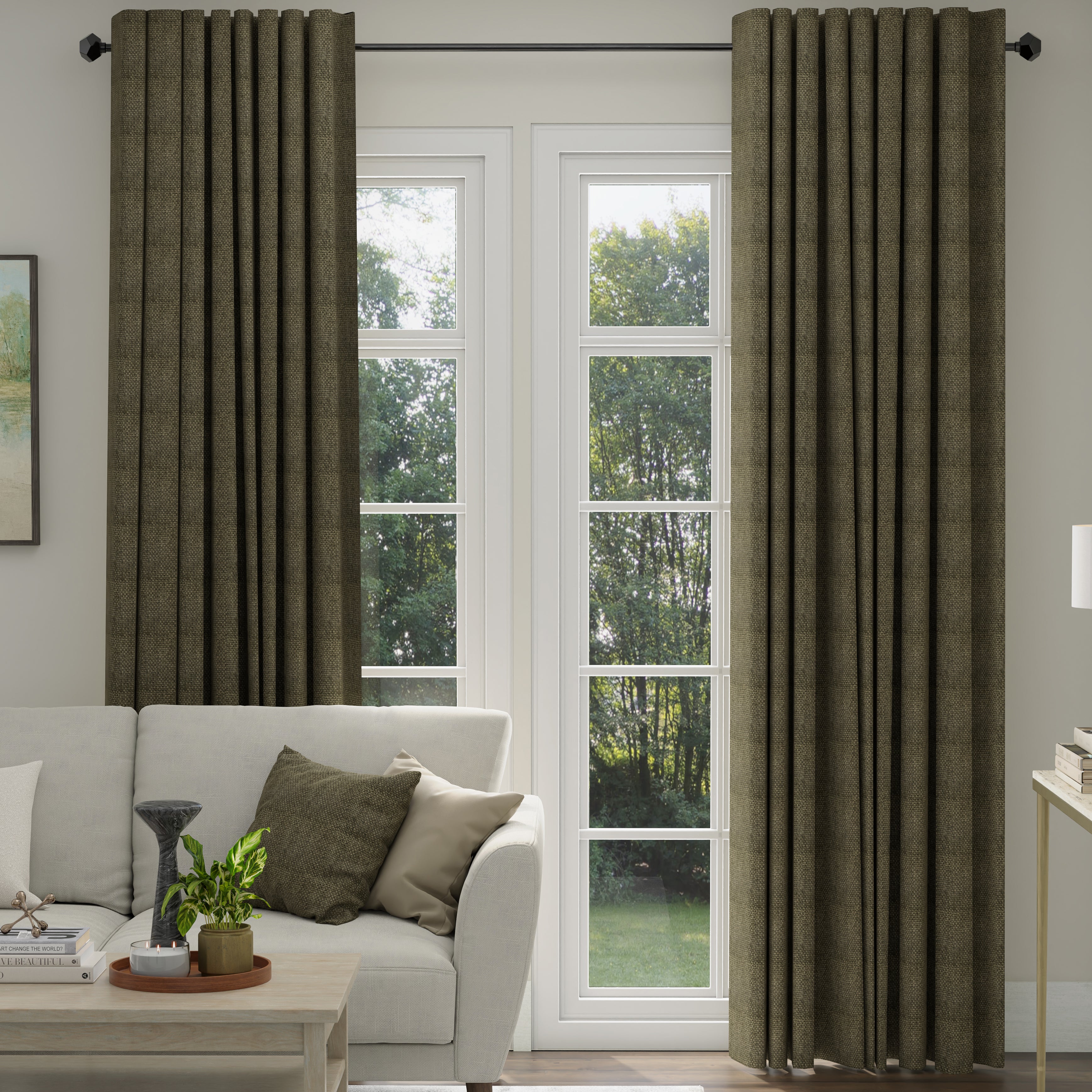 These made-to-measure curtains from the ANTE DECOR collection feature the Eden Fabric in Mocha, crafted from a durable and premium hopsack chenille weave. This fabric combines a distinctive texture with a dense weave, ensuring resistance to wear while maintaining a soft and comfortable finish. Ideal for sophisticated and enduring home décor, this fabric blends functionality with refined style.