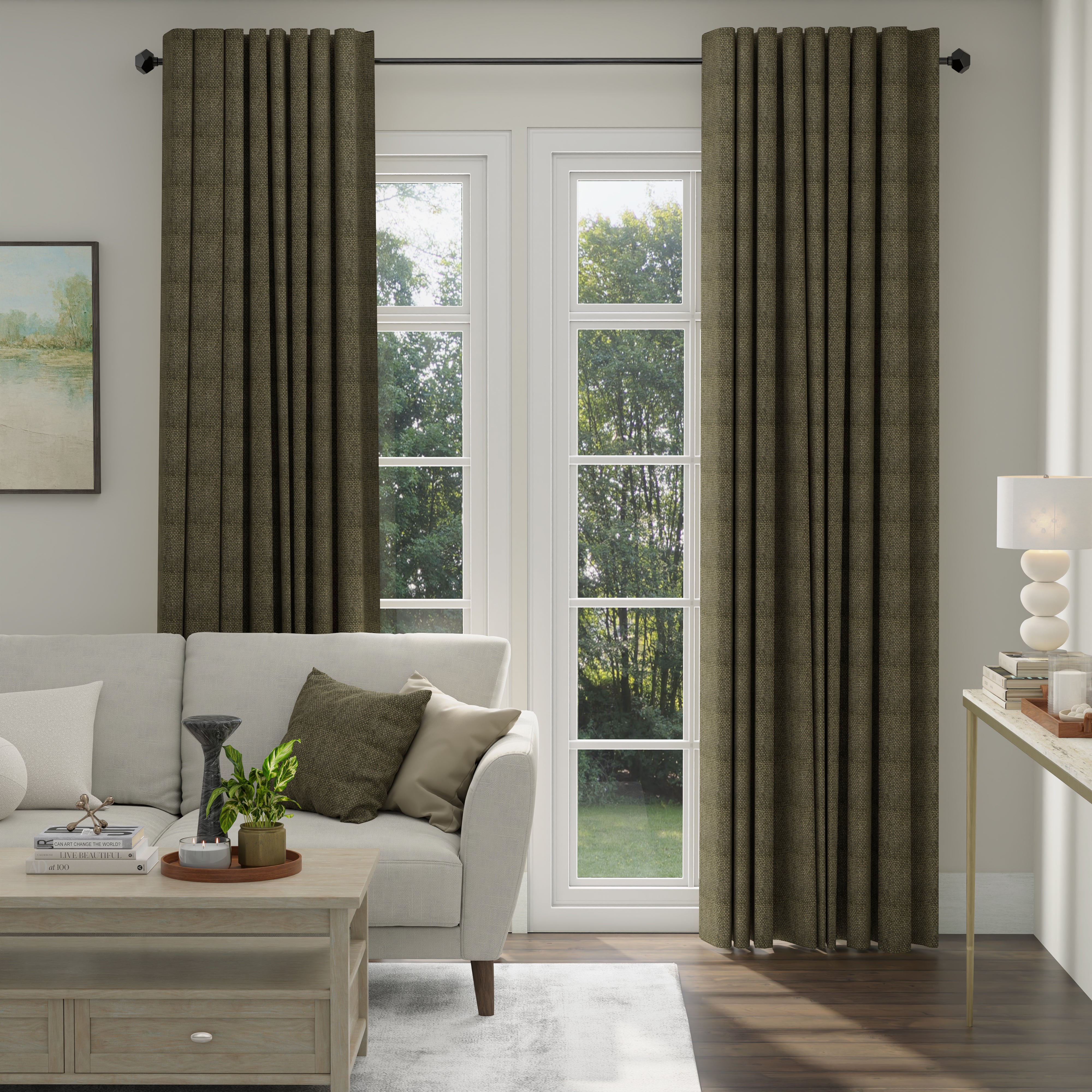 • Beige curtains