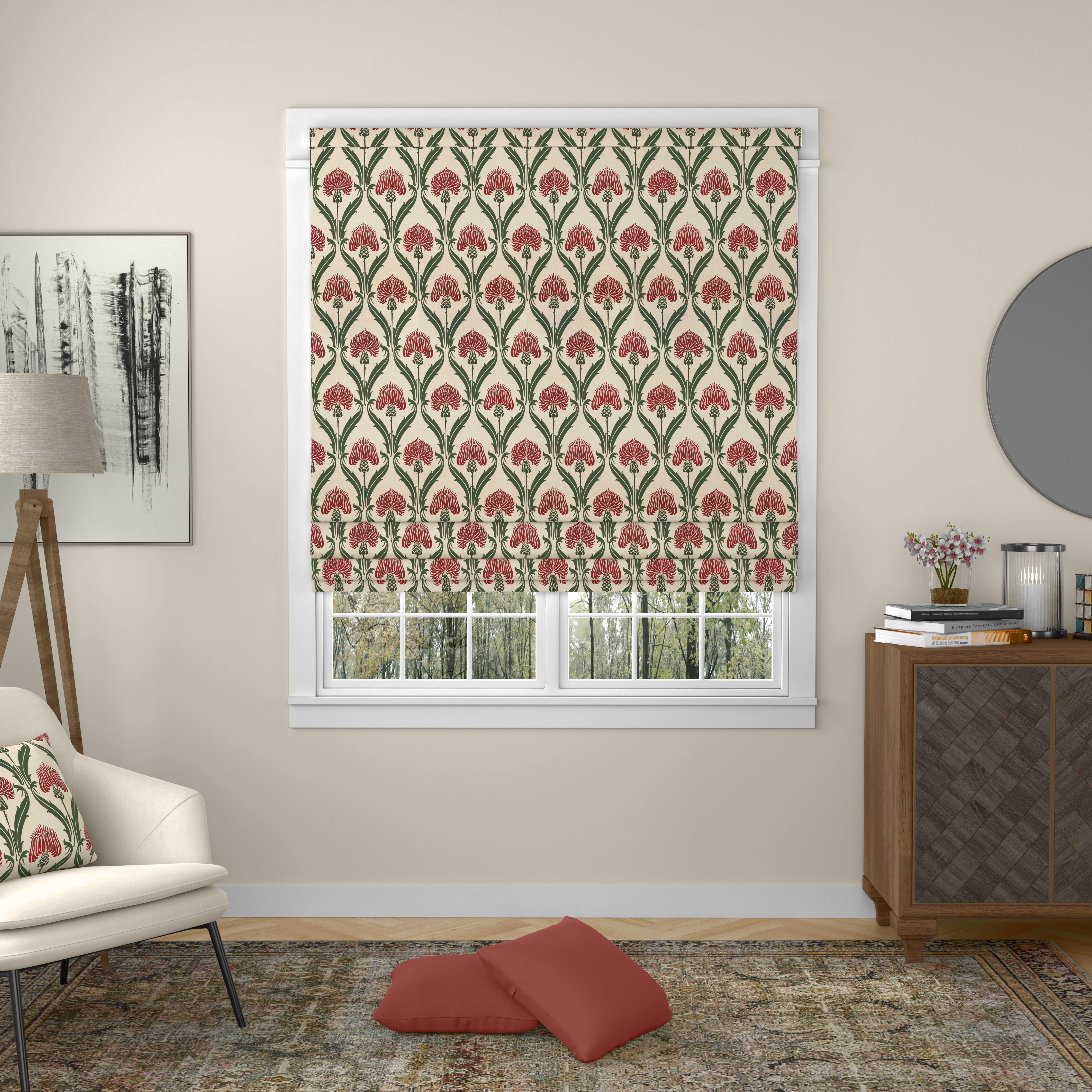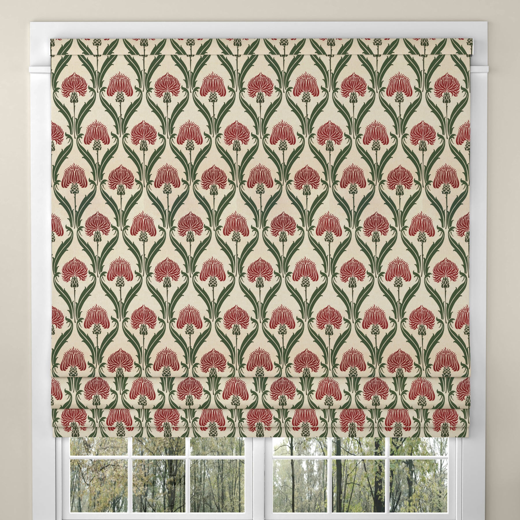 The ANTE DECOR Highland Thistle Made To Measure Roman Blind in Cream Red combines timeless design with expert craftsmanship. Crafted from 100% cotton, this fabric offers natural breathability and durability, ensuring long-lasting quality. The intricate thistle pattern adds a touch of classic elegance, perfect for enhancing traditional or contemporary interiors. Custom-made to your measurements, this Roman blind provides a tailored fit that complements your window space seamlessly. Ideal for those seeking both style and functionality, it allows you to control light and privacy with ease while adding a refined decorative element to your room.