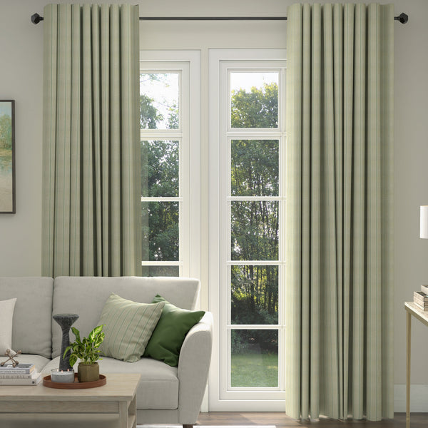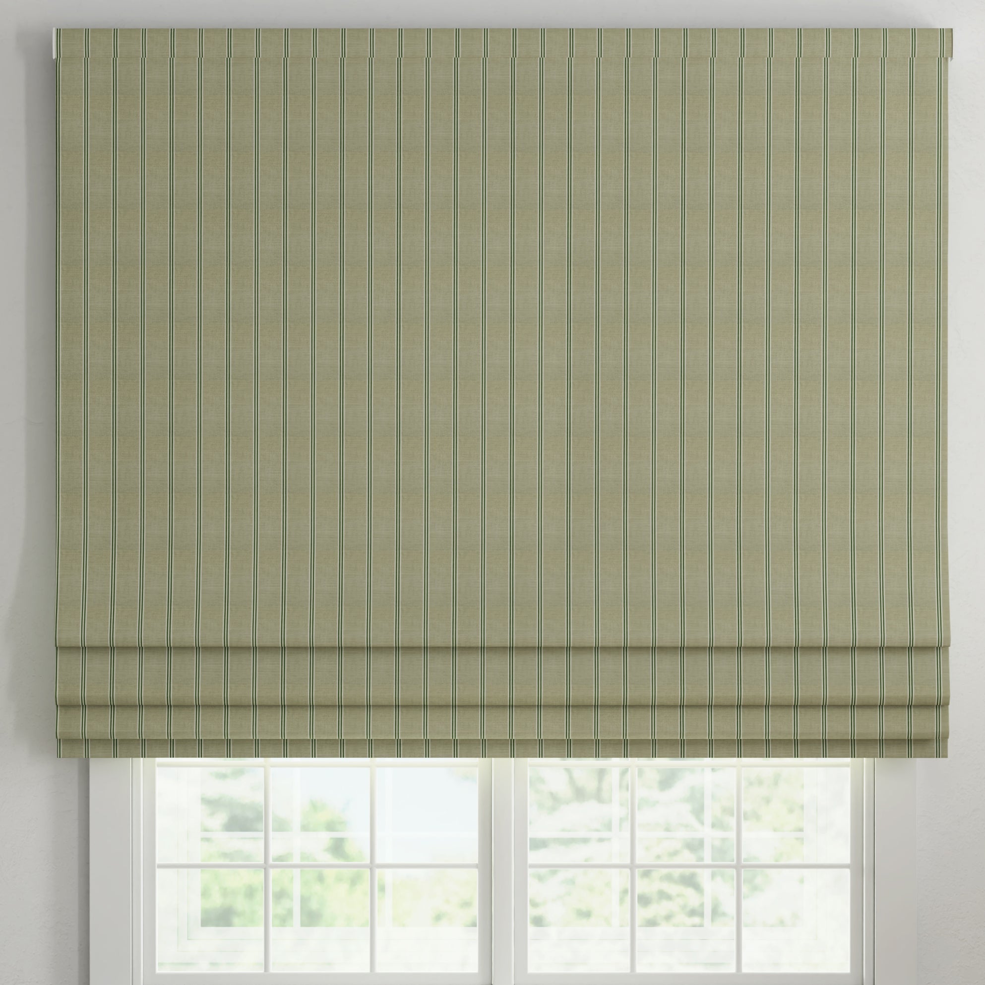 These made-to-measure curtains from the ANTE DECOR range feature the Latham Printed Cotton Stripe fabric in green, made from 100% premium cotton for lasting quality and comfort. The fabric presents a refined mix of tonal background shades highlighted by crisp light and vibrant green stripes, creating an elegant nautical-inspired look. Its deep beige neutral base combined with green stripes offers flexibility to suit diverse interior themes. Ideal for Roman blinds, curtains, or upholstery, this fabric adds a timeless sophistication and subtle character to any room, merging style with practical durability.