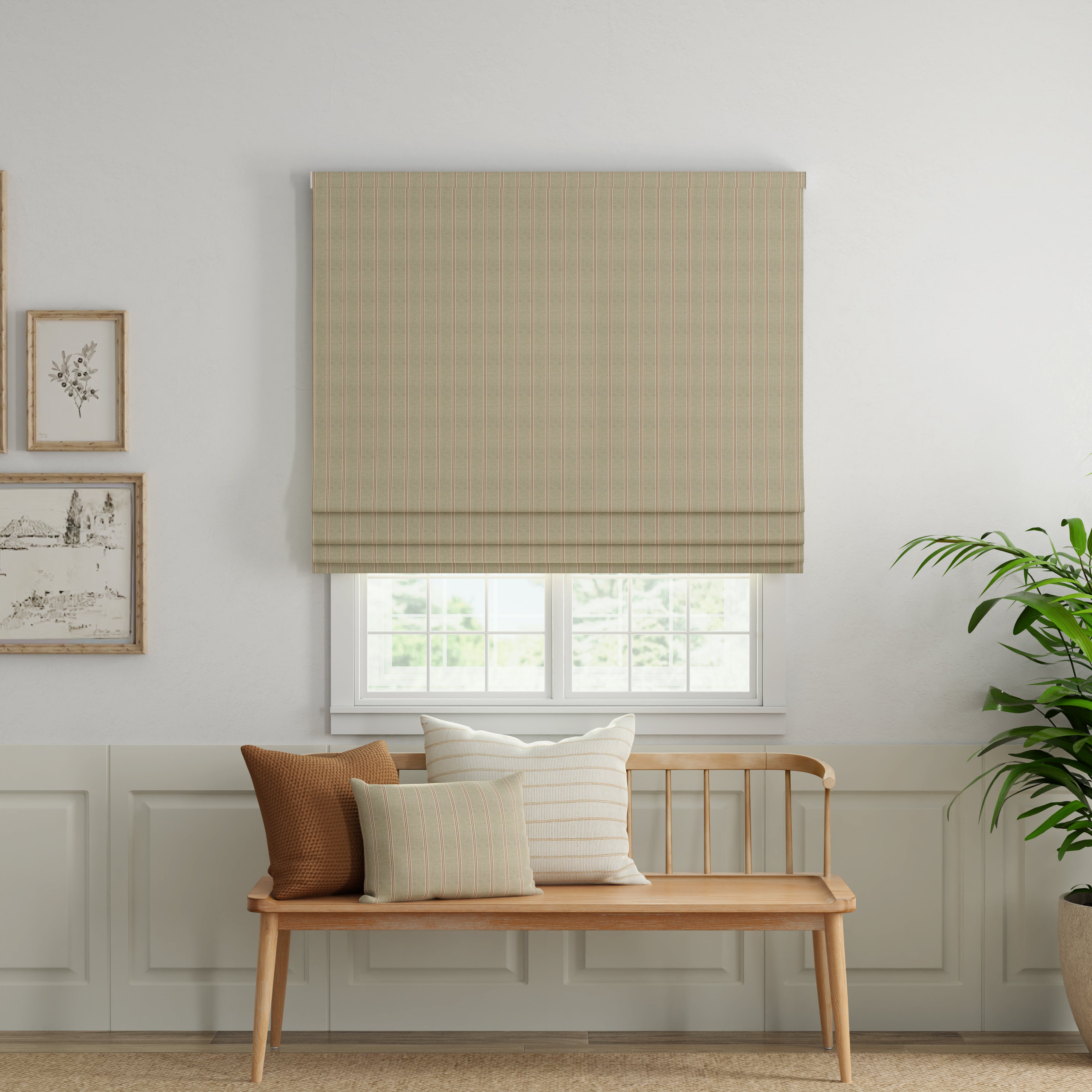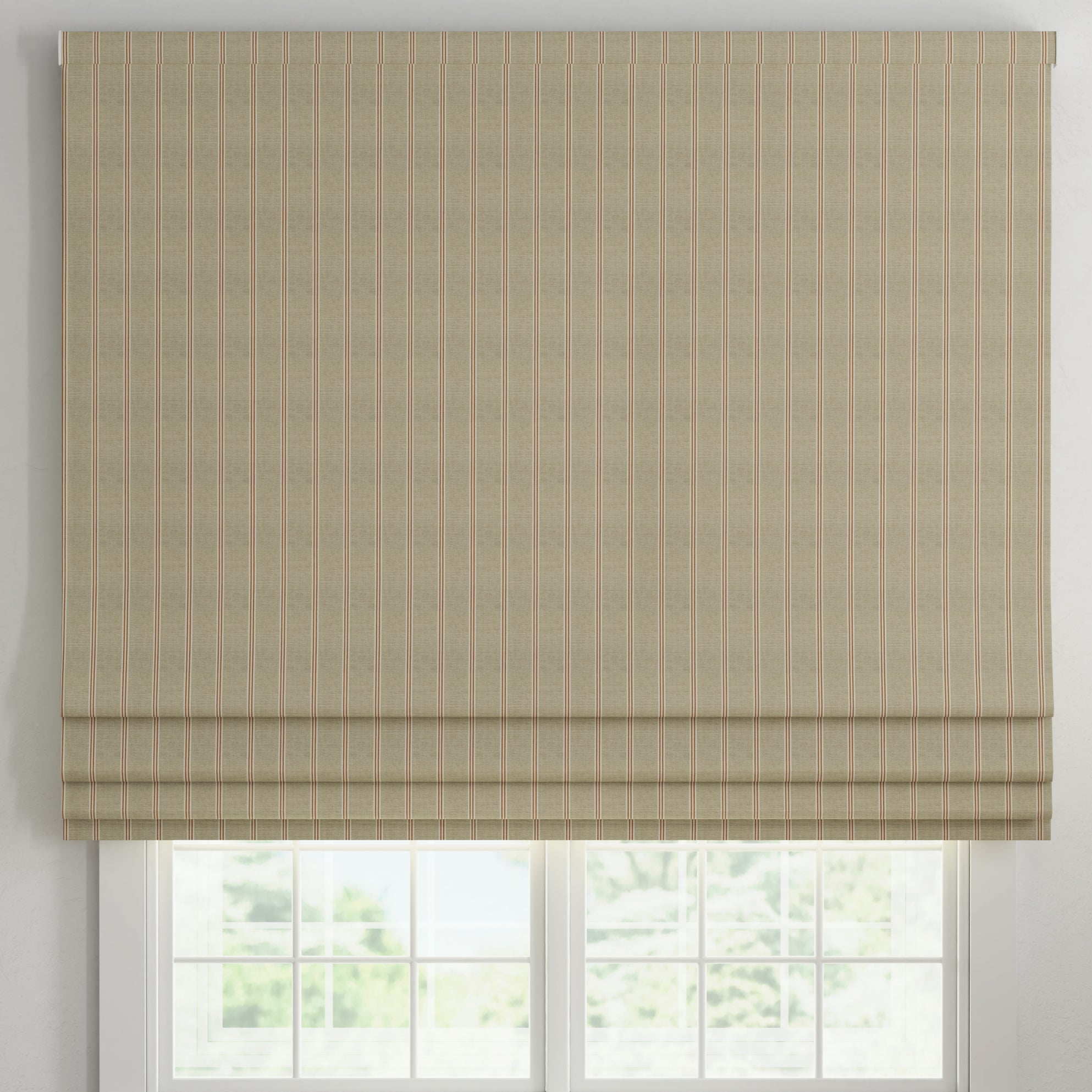 Expertly crafted from 100% cotton, this high-quality fabric boasts a timeless design with tonal background tones and contrasting coloured stripes. Its versatile use as Roman shades or curtains will add a touch of classic elegance to any space. The rust terracotta striped design and natural deep beige background make this fabric perfect for achieving a traditional and sophisticated look.