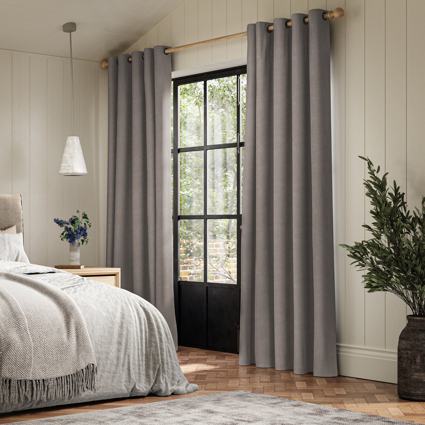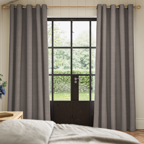 These curtains feature a thick, plush chenille-style surface with a luxurious sheen and soft pile, perfect for prominent living areas. Available in a selection of timeless, elegant shades, the fabric is inherently blackout, completely blocking out light without the need for lining. Designed unlined to maintain a sleek profile and maximise the blackout effect, they use extra-wide material to avoid seams, ensuring a smooth, refined finish tailored to your exact measurements.