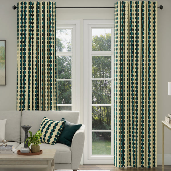 These made-to-measure curtains from the ANTE DECOR collection feature the Valencia fabric’s retro repeated circle design, enriched with a subtle printed texture that adds depth and warmth. Made from 100% cotton, this versatile fabric makes coordinating your colour palette effortless. The ANTE DECOR Valencia is ideal for any room, allowing you to achieve a striking and harmonious look with complementary fabrics tailored to your windows.