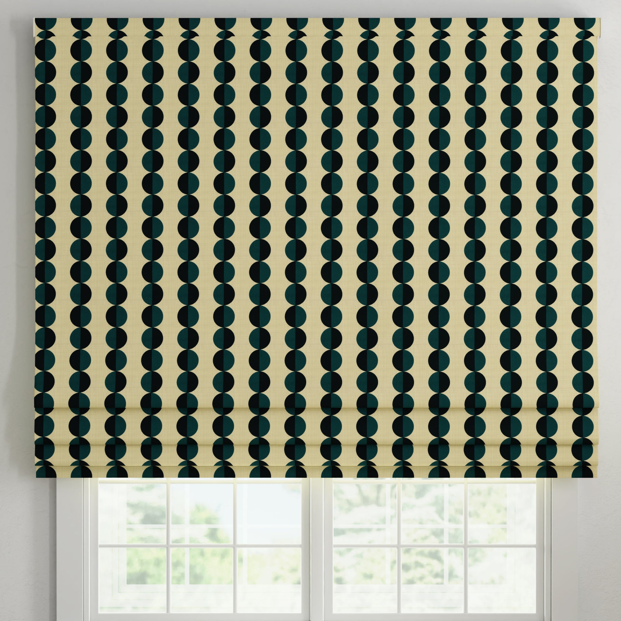 This tailor-made Roman blind from the ANTE DECOR range features the Valencia fabric’s vintage repeating circle motif, enriched with a delicate printed texture that brings depth and a cosy feel to the sophisticated design. Manufactured entirely from 100% cotton.