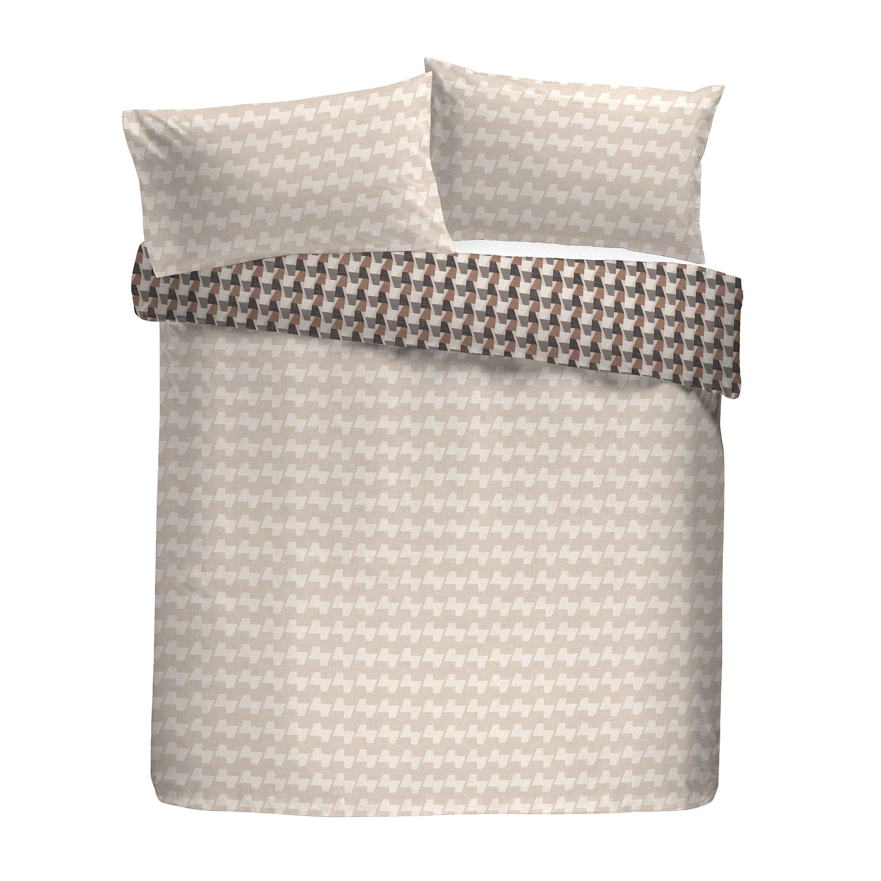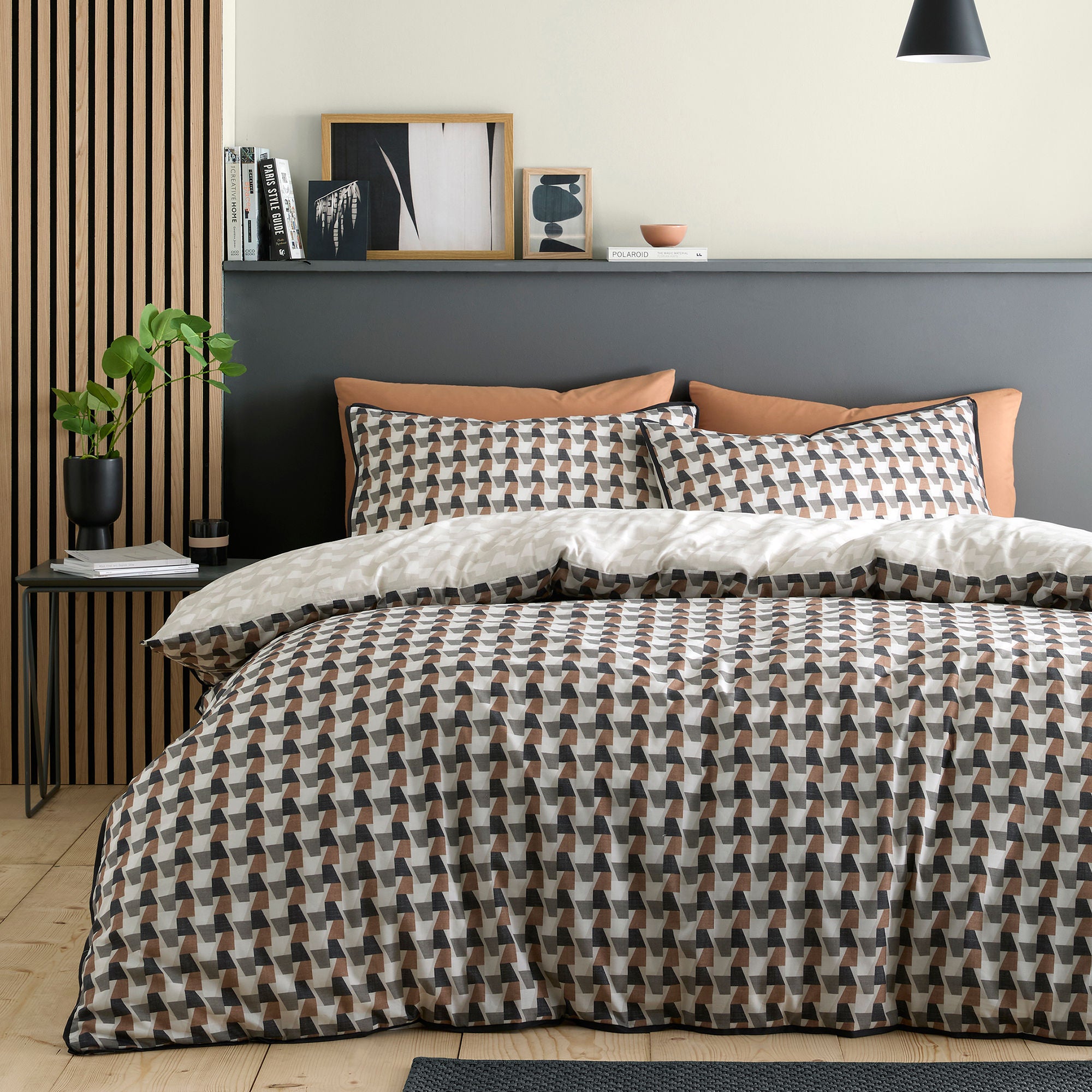 Experience refined comfort with the Jett Duvet Cover Set. Showcasing a subtle geometric pattern paired with a contrasting natural reverse, this 100% cotton set is finished with black flat piped edges. It combines elegant style and softness, ideal for creating a peaceful and sophisticated bedroom environment.