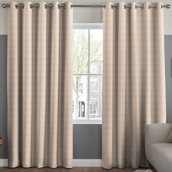 Eyelet Heading - Eyelet headings can only be used with curtain poles, and there is a choice of eyelet colours available to help you match the curtains to your room. Eyelet curtains take up very little room each side of the window, and this allows the maximum amount of light through your window. You also need slightly less fullness in eyelet curtains so they work very well for smaller windows. However, its best to avoid vertical striped patterns as they can look a little strange when opened.