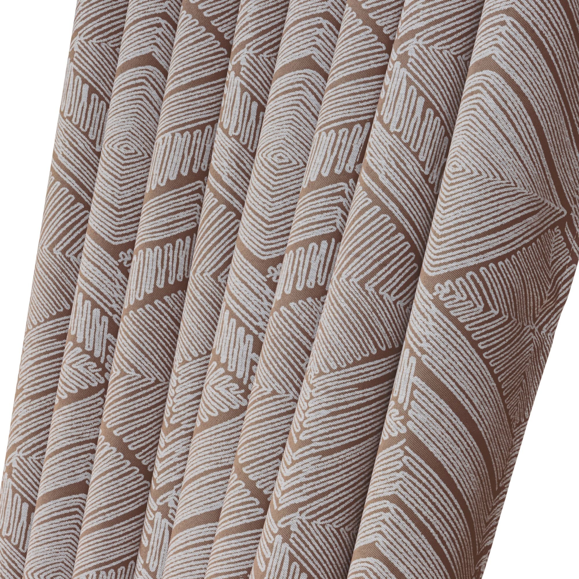 Transform your interior with these Aztec Geometric Blackout Curtains in rust, where sophisticated design meets practical performance. The triple weave fabric creates a luxurious drape while providing exceptional light-blocking capabilities, thermal insulation, and sound dampening—ideal for bedrooms, living spaces, and home offices. The striking geometric pattern adds contemporary character and visual depth to any room. Pre-fitted with a ring top header for straightforward installation, these ready-made curtains hang in refined, uniform folds for an instantly polished finish. Experience premium blackout functionality without compromising on aesthetic appeal.