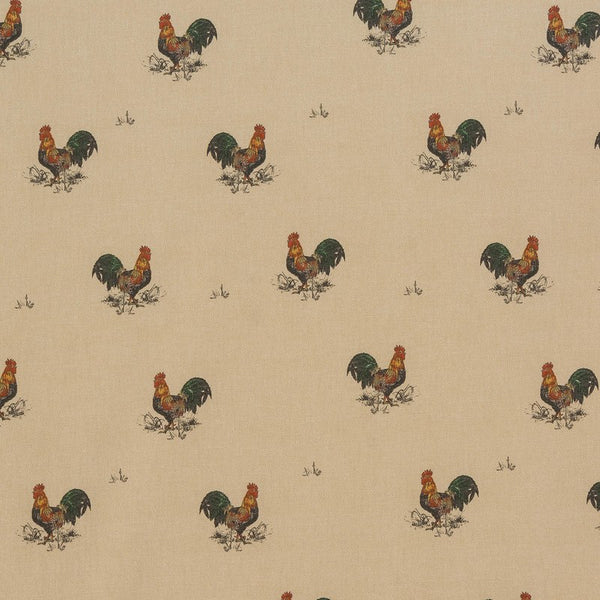 This quirky detailed fabric features a charming country style pattern which will add a touch of heritage charm to your home’s decor. Set against a neutral background, the colourful cockerels dance across the fabric enhanced with a spash of colour. Make vintage charm part of your home with the 100% cotton Bantam fabric.