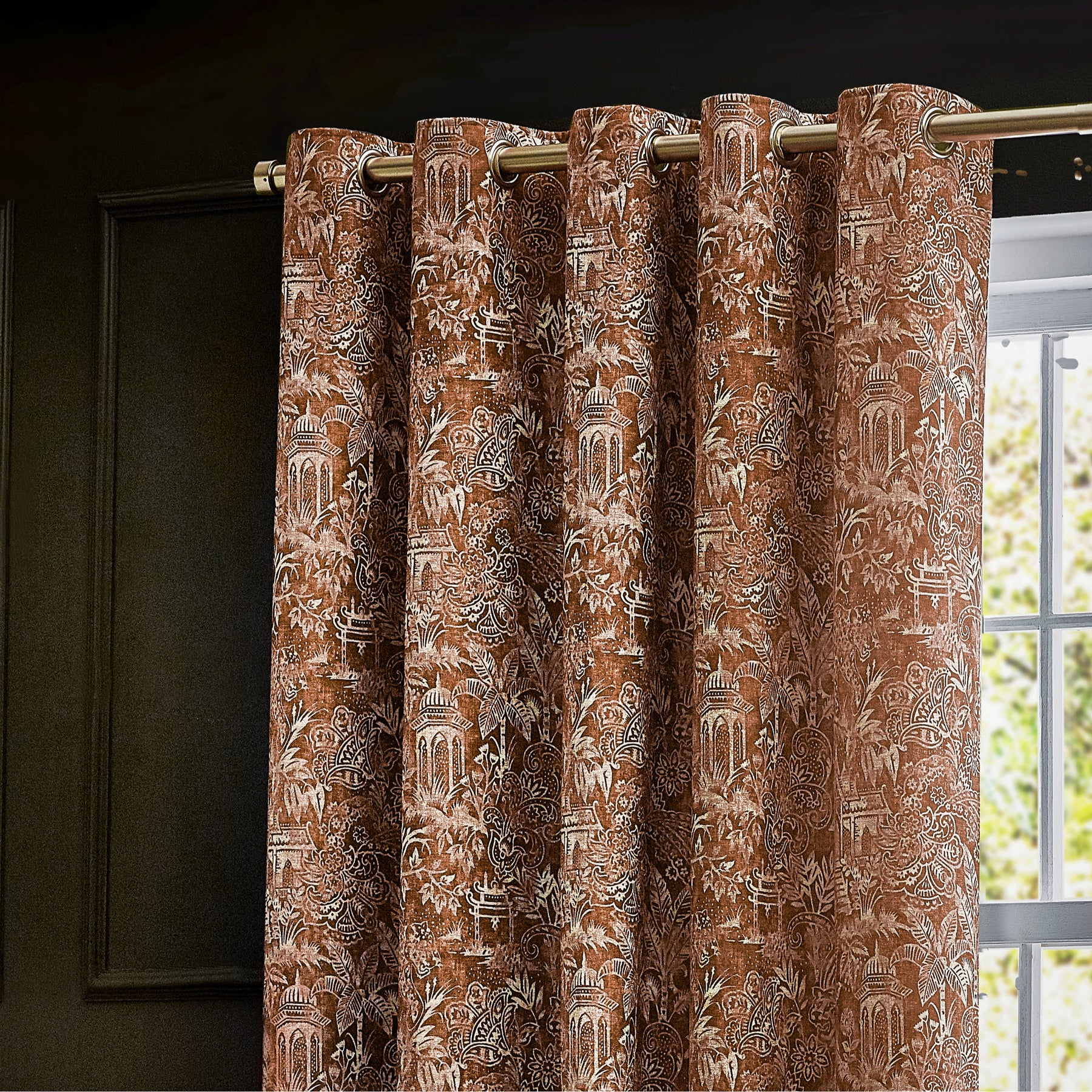In rich, bold tones, Wylder Tropics embodies the splendour and opulence of faraway, foreign vistas. This striking set of eyelet curtains features a stunning Bengal Tiger amidst a lush jungle landscape, all exquisitely printed on lavish chenille fabric. With a variety of contemporary, tonal shades to choose from, these curtains are sure to spark conversation among all who behold them.