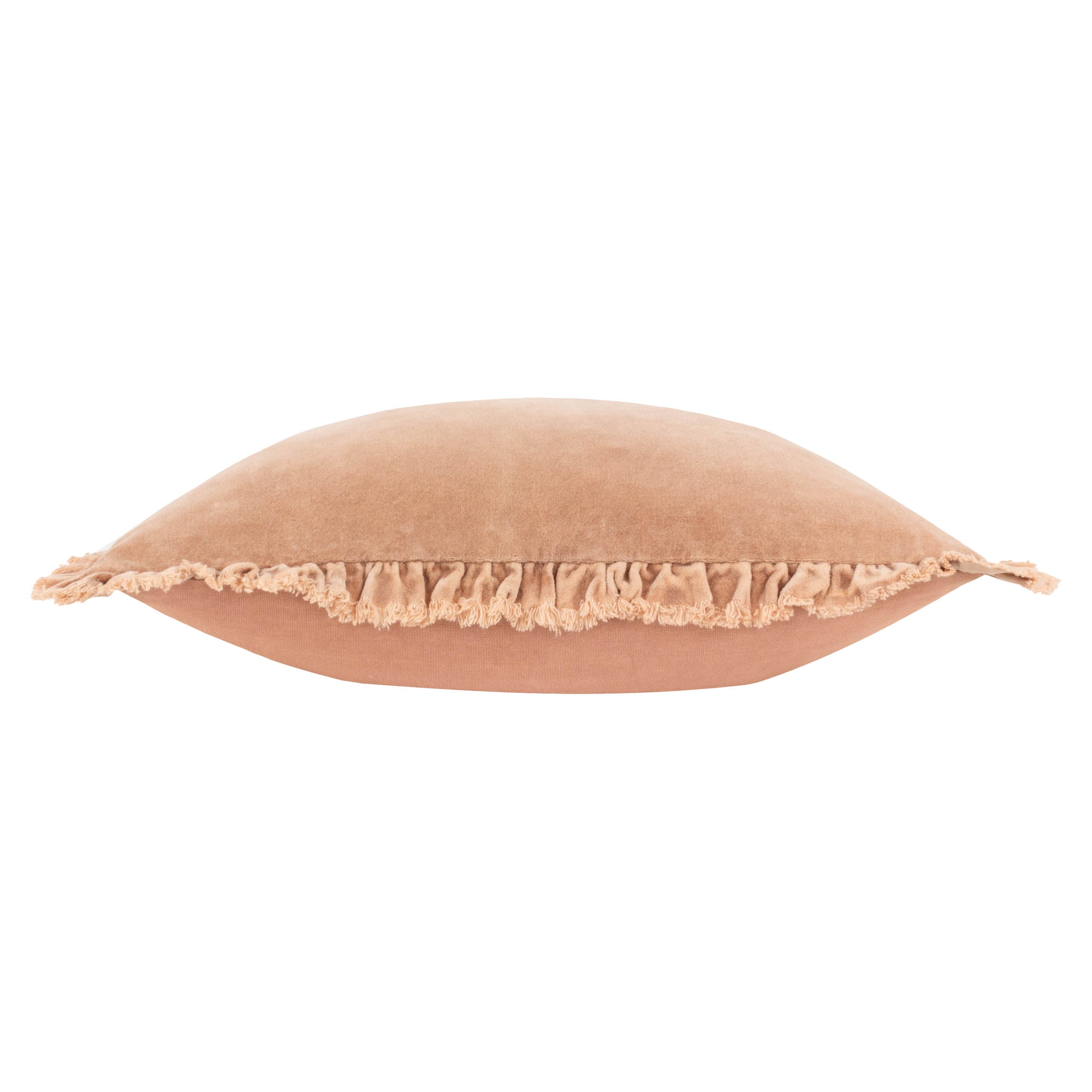 Experience ultimate comfort and long-lasting quality with the Bertie Cotton Velvet Filled Cushion in Cashew. Made with enzyme-washed cotton velvet, this cushion features a relaxed, minimalist design with a durable cotton reverse and a charming frayed, fringed edging. The zip fastening adds convenience to this versatile cushion, making it the perfect addition to any modern living space.