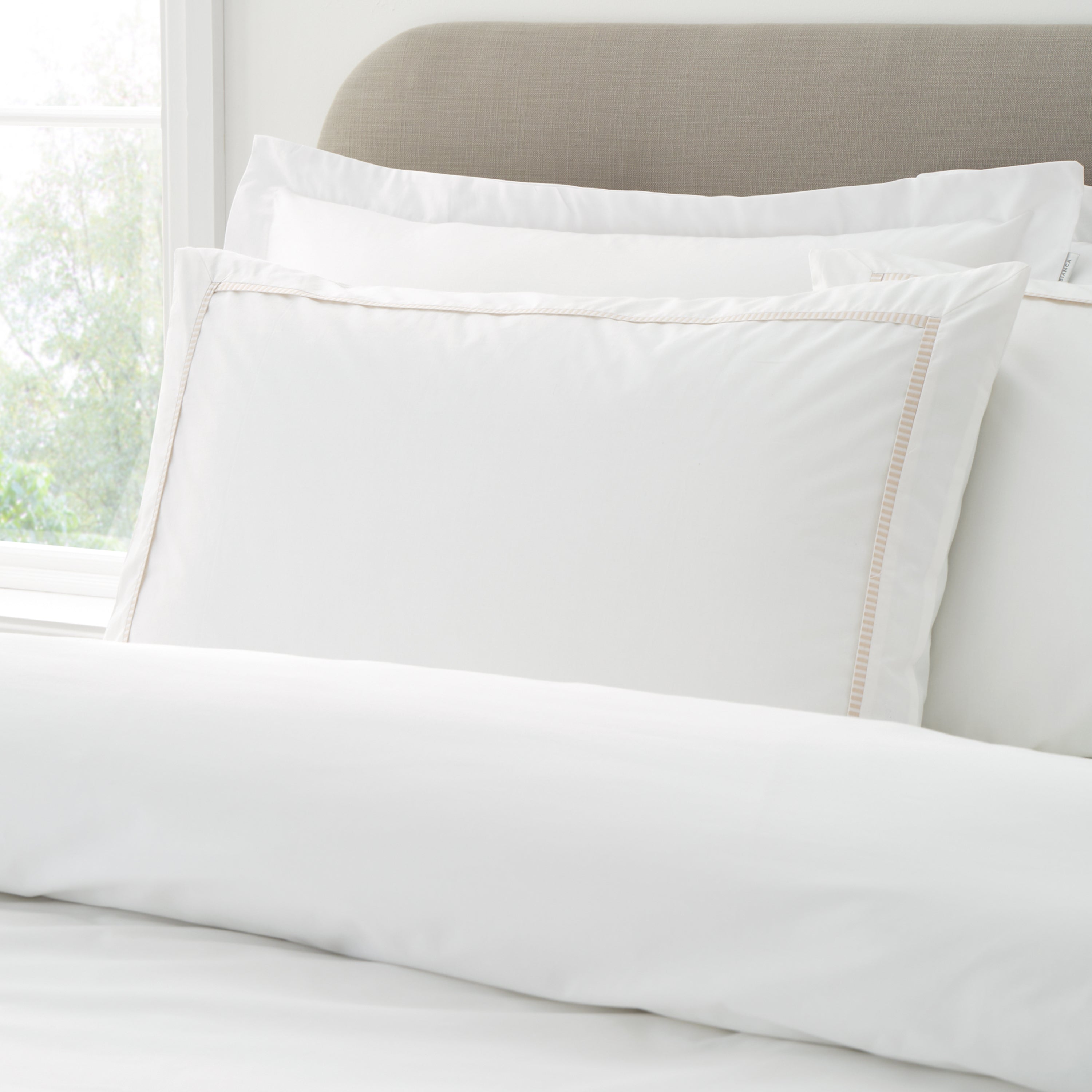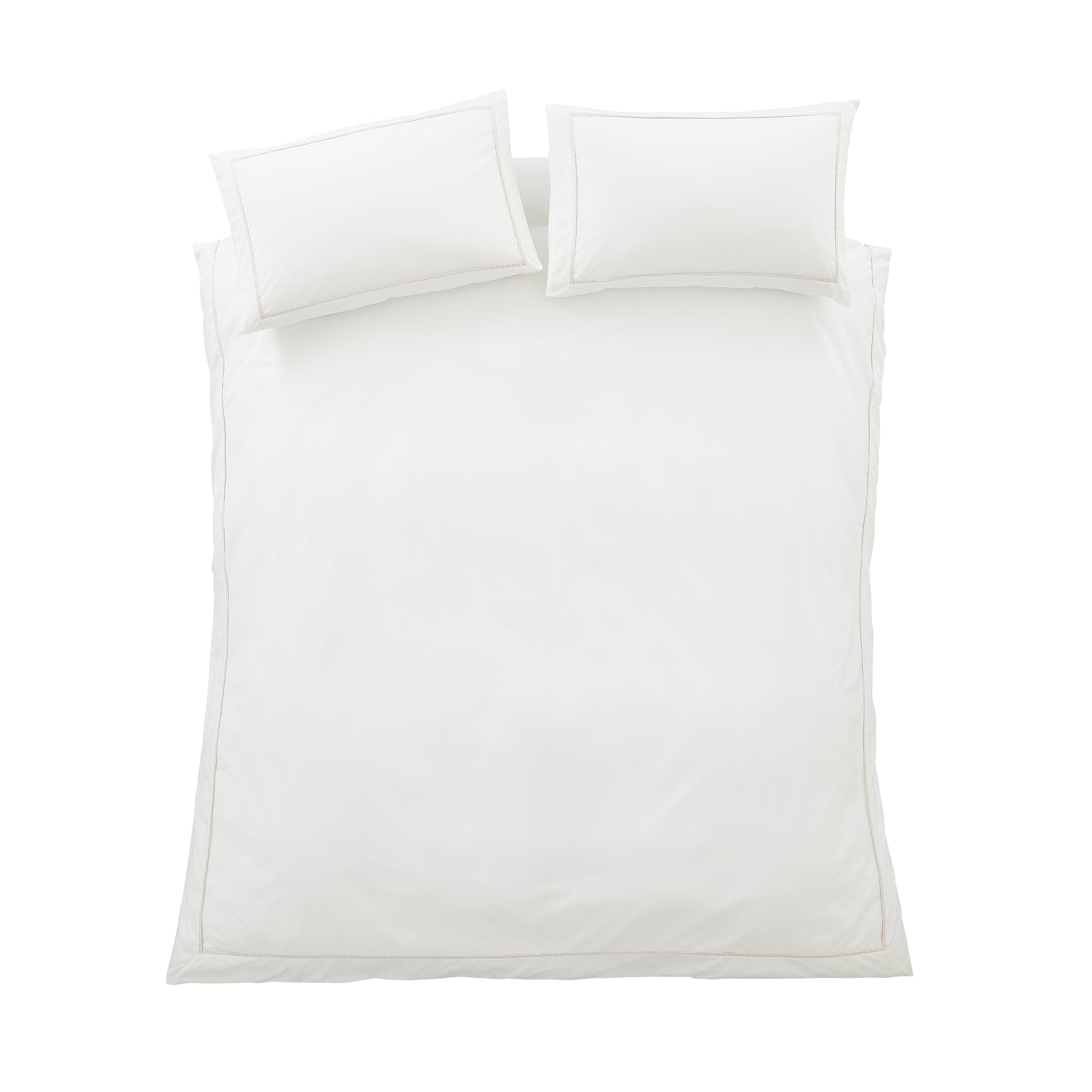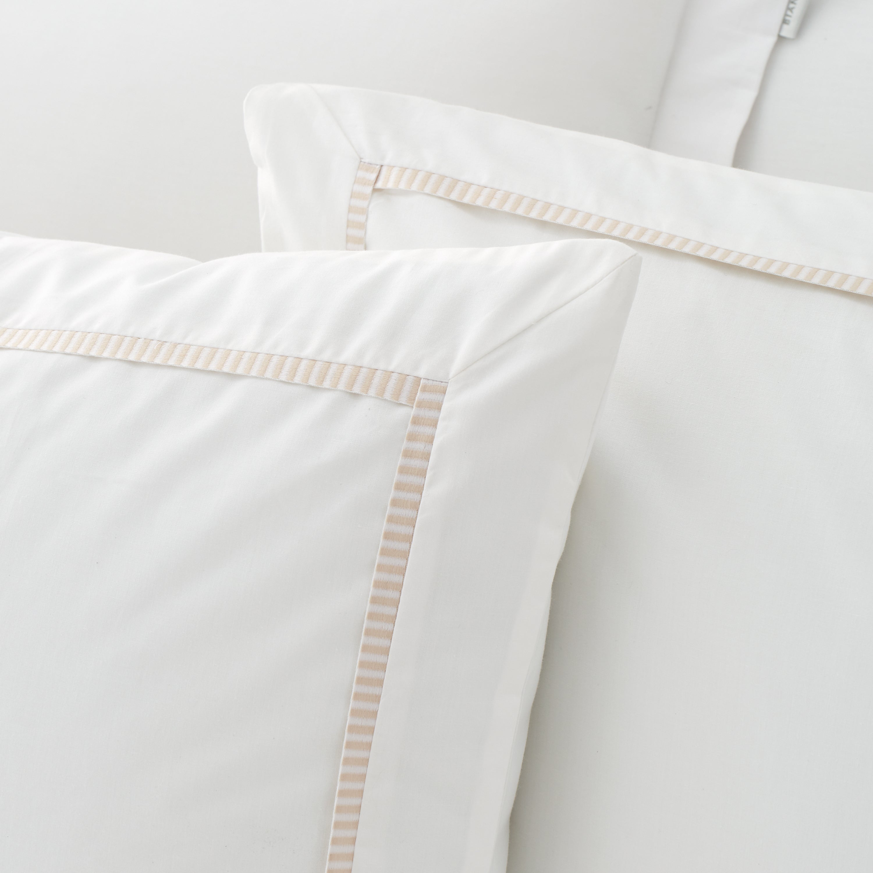 Transform your sleeping space with the Bianca Contrast Trim Duvet Cover Set, where contemporary design meets exceptional comfort. This sophisticated bedding features a pristine white foundation complemented by striking black and white striped detailing, creating a refined aesthetic that suits any modern bedroom. Crafted from premium 200 thread count percale cotton, this naturally breathable fabric promotes superior airflow and supports restorative sleep. The percale weave delivers a crisp, cool feel that enhances comfort throughout the night. Certified to MADE IN GREEN by OEKO-TEX® standards, this set meets rigorous quality and environmental safety requirements, ensuring both luxury and responsibility. Bianca represents the perfect balance of timeless elegance and contemporary style for a restful sanctuary.