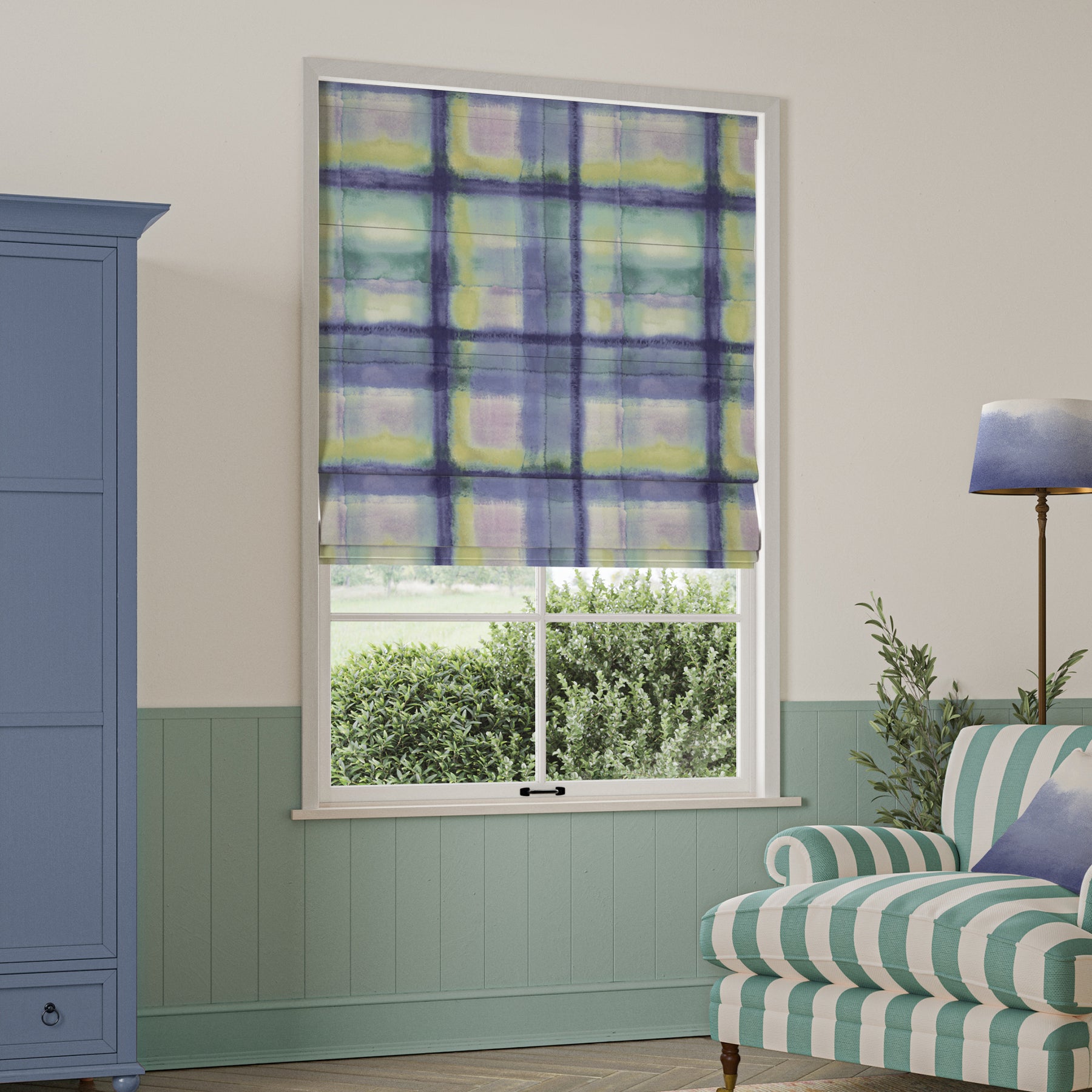 This bespoke Roman blind is crafted from printed 100% cotton fabric, presenting a contemporary take on a traditional Scottish motif. The hand-painted tartan pattern combines warm, intersecting lines and colour blocks to create a classic yet adaptable design, distinguished by its subtle artistic elegance.