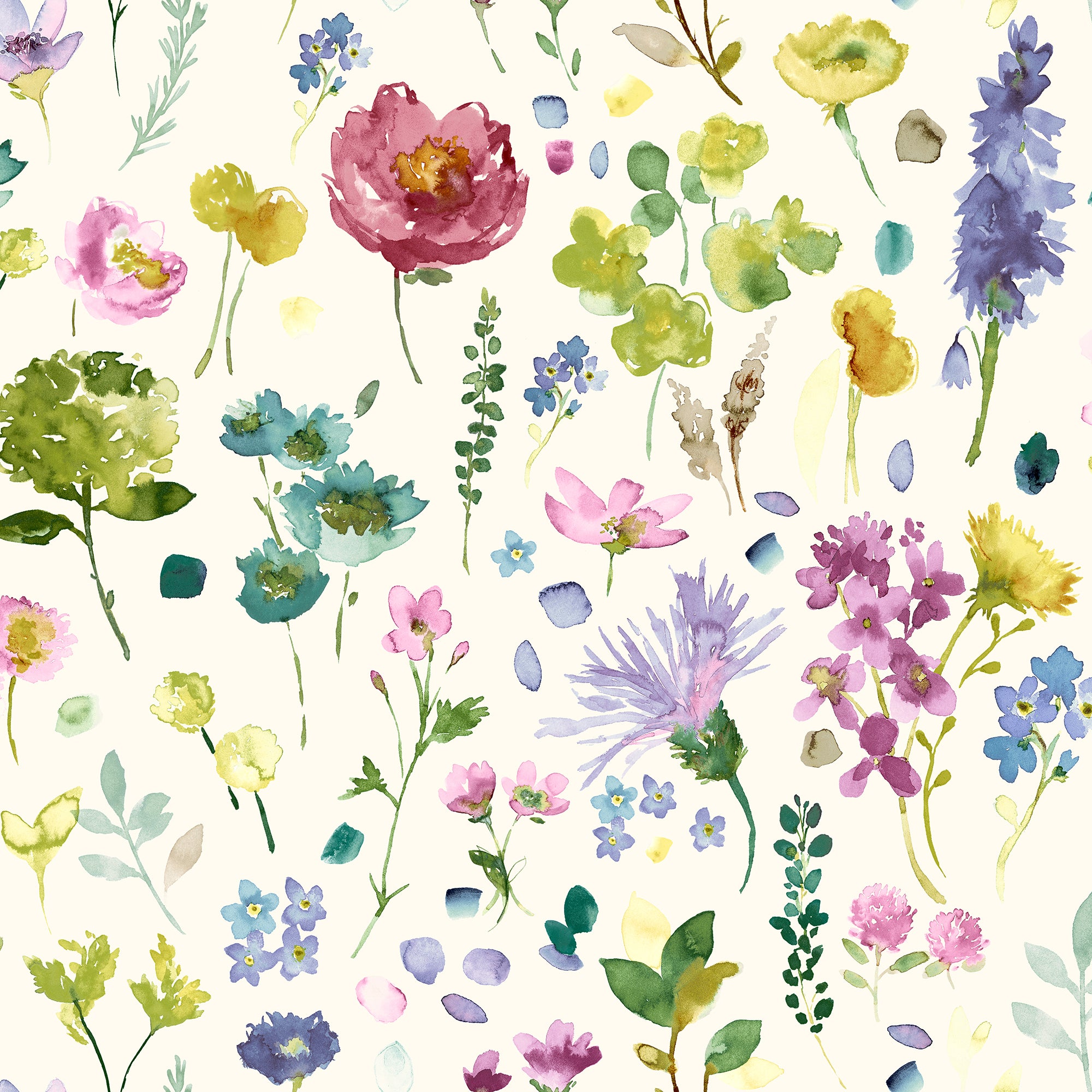This custom Roman blind features printed 100% cotton fabric inspired by the colorful diversity of an English wildflower meadow. Tetbury Spring presents unique floral designs in pink, blue, teal, and yellow hues. Its bold, painterly blossoms deliver a fresh and modern look, enhancing any interior with natural sophistication and charm.