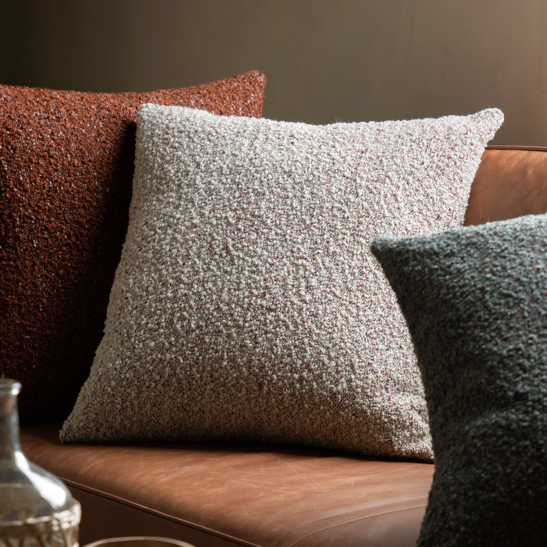 Luxurious and versatile, the Boucle Knife Edge Filled Cushion Grey adds texture and depth to any room. With subtle multicoloured flecks running through the weave, this high-quality cushion measures 55cm x 55cm for maximum impact. Upgrade your home decor with this expertly crafted piece.