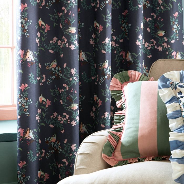 Each aspect of the Paper Birds pattern was meticulously crafted using hand-cut tissue paper, resulting in a beautifully distinct design. Soft, pastel-coloured birds rest upon a dainty floral trail, adding a touch of novelty and cheer to any living space. Printed on a soft cotton linen with a deep nightshadow blue background, these curtains are completed with a contemporary eyelet header and blackout lining for added functionality.