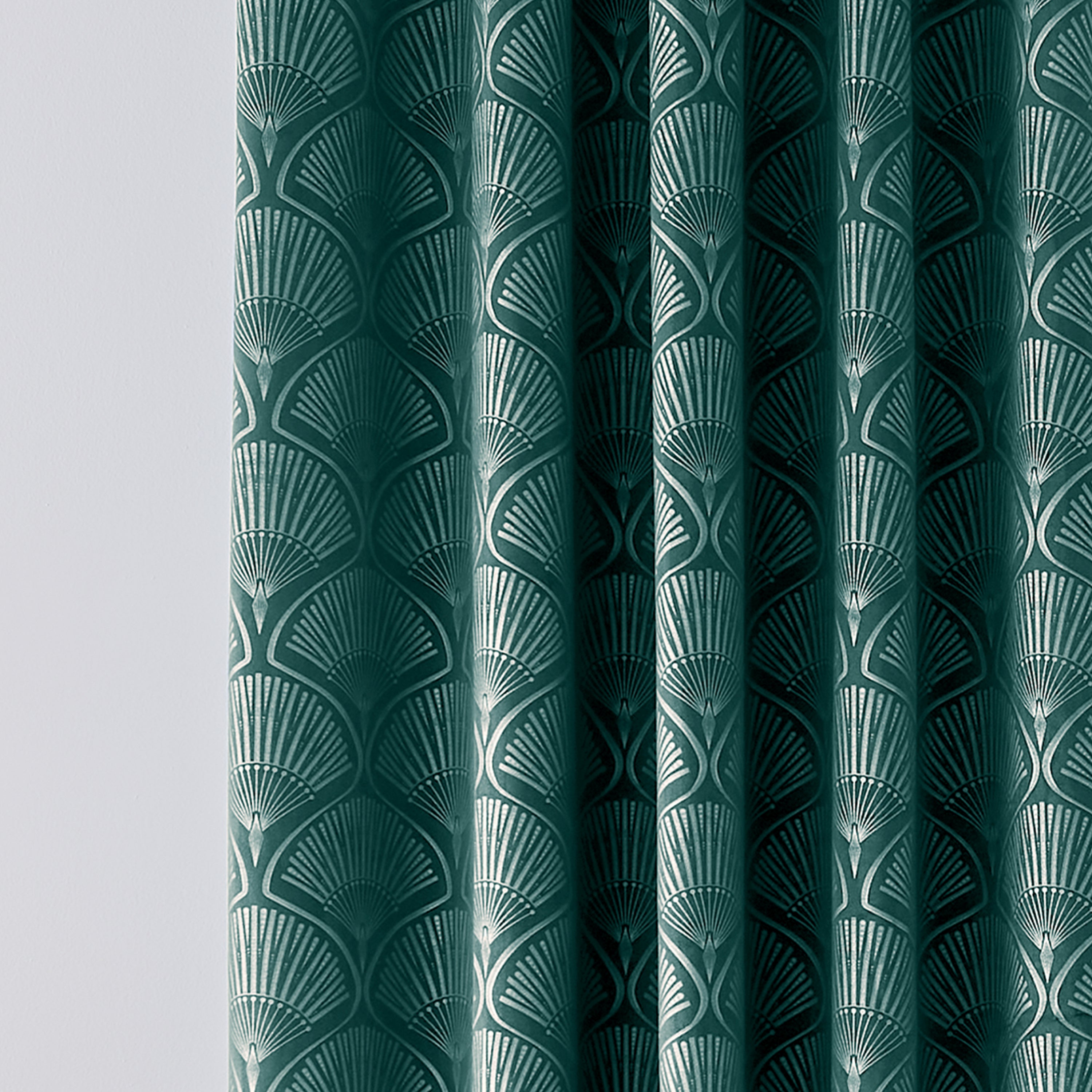 Elevate your interior with these Catherine Lansfield eyelet curtains, showcasing an iconic Art Deco shell fan motif enhanced by a lustrous pearl finish. The teal colourway brings sophisticated depth to any room, whilst the ready-made design ensures effortless installation. Crafted with the meticulous attention to detail Catherine Lansfield is celebrated for, these curtains combine British design expertise with premium quality construction.
