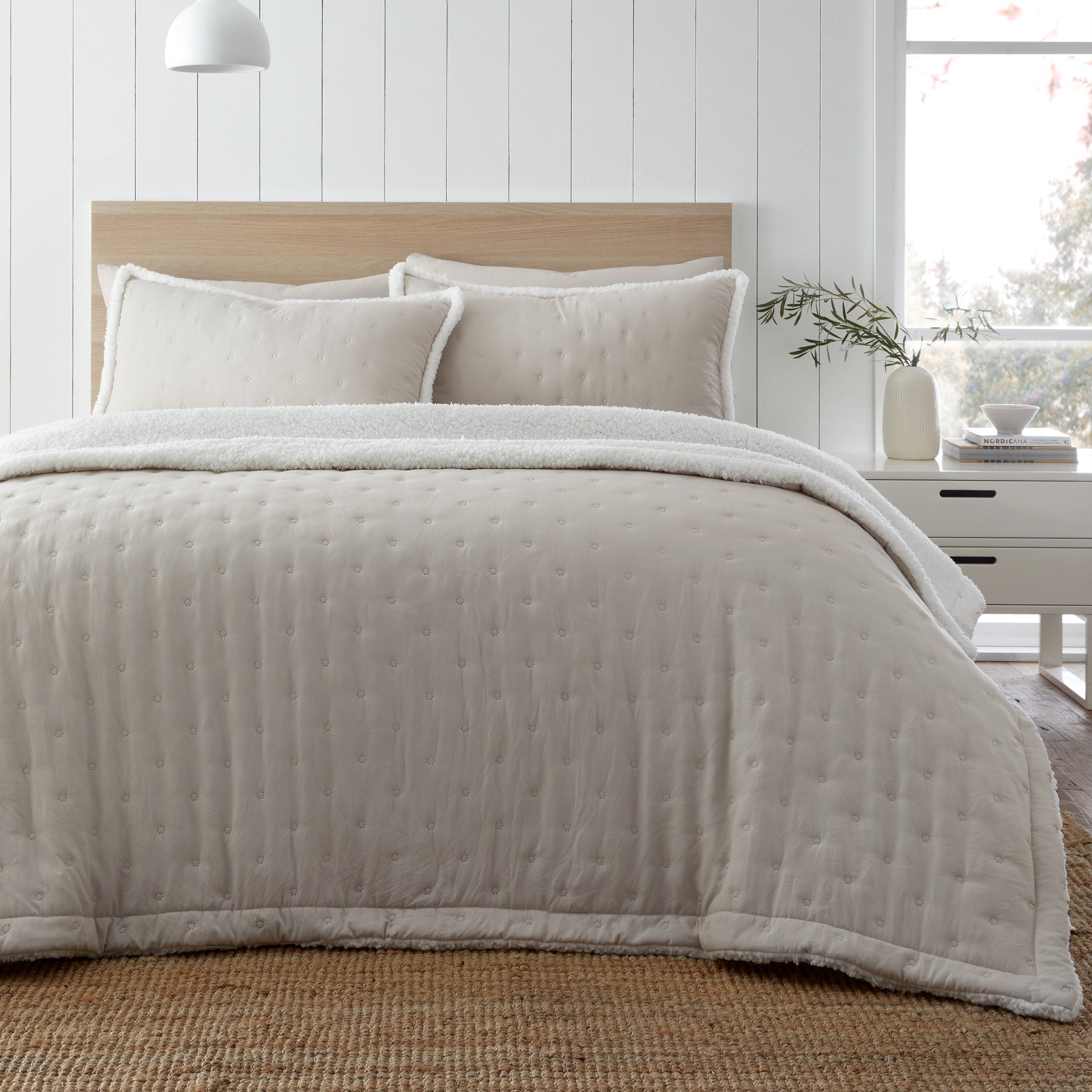 Catherine Lansfield Cosi Nori Sherpa Bedspread 220cm x 230cm Cream