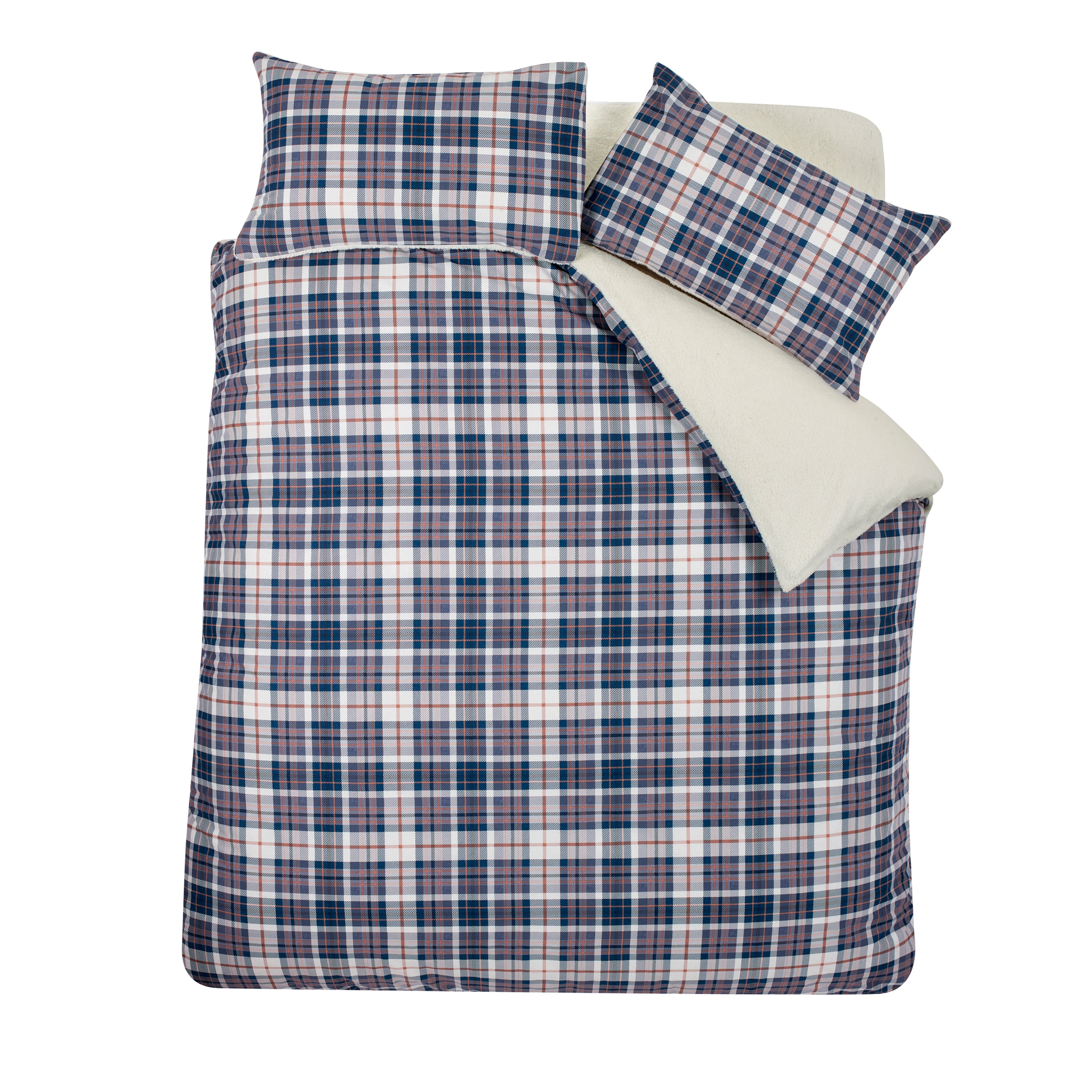 Wrap yourself in seasonal warmth with this Sherpa check bedding set, expertly designed for maximum comfort during cold nights. Showcasing a classic check design, it adds a refined touch to any bedroom. The reverse side is made with soft Sherpa fabric, providing a snug and welcoming texture ideal for winter use.