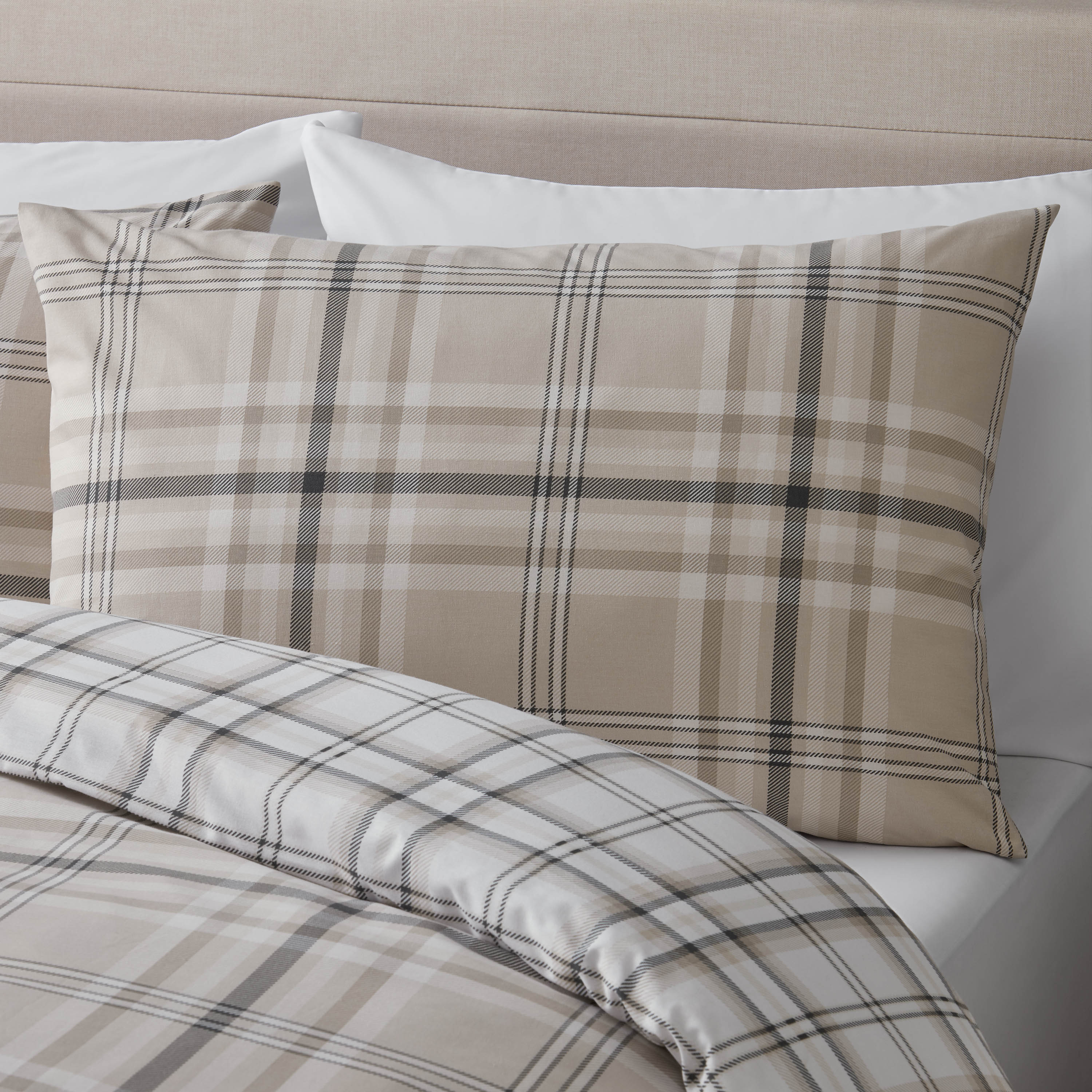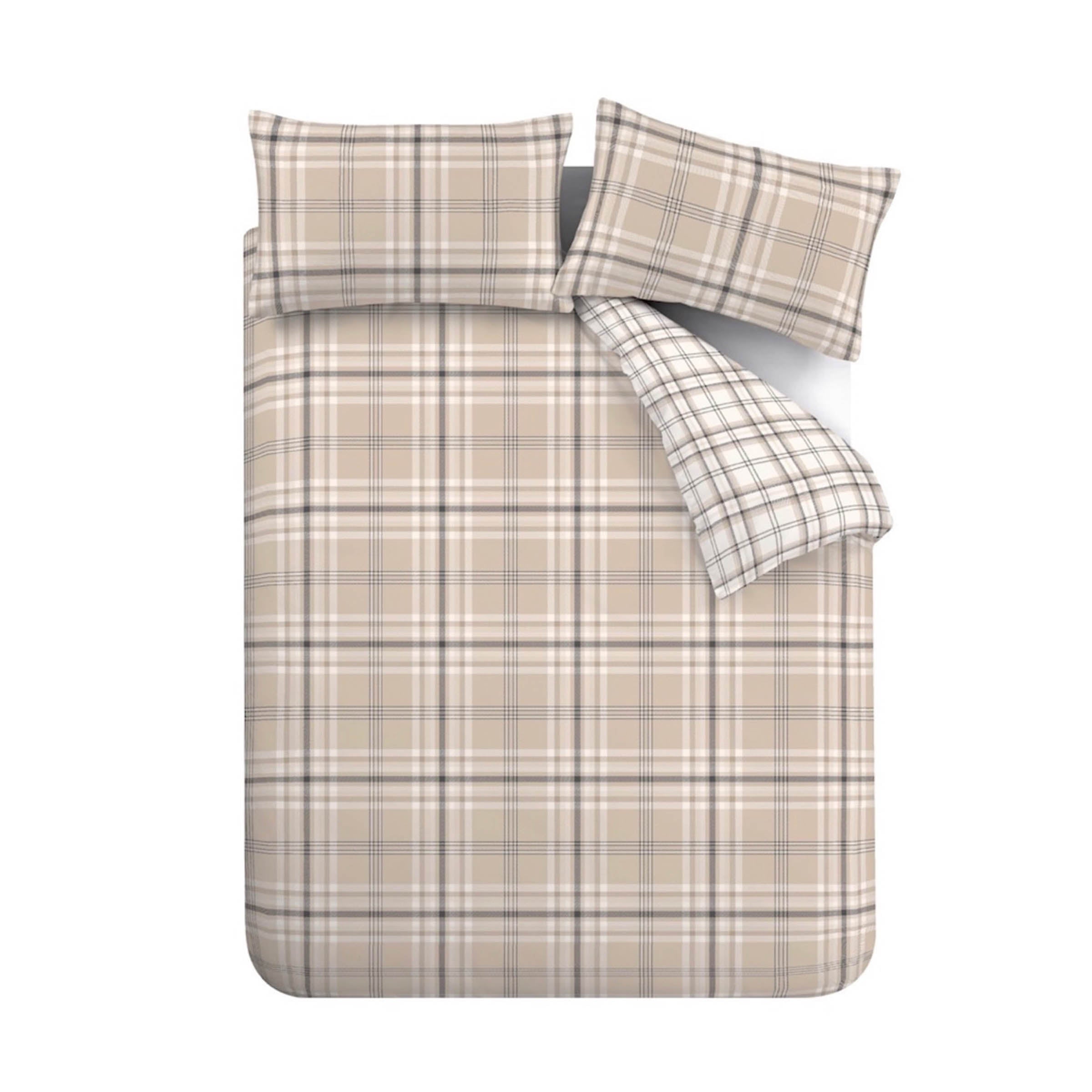 Transform your bedroom with this Catherine Lansfield duvet cover set, featuring a striking large-scale tartan check that reverses to reveal a subtler pattern for versatile styling options. Crafted from a thoughtfully blended composition of recycled polyester and cotton, this bedding delivers both durability and comfort for everyday use. The fabric requires minimal maintenance, making it practical for busy households. Designed and manufactured in Great Britain, this set meets rigorous quality standards and is MADE IN GREEN by OEKO-TEX® certified, reflecting Catherine Lansfield's commitment to both aesthetic excellence and responsible production practices.