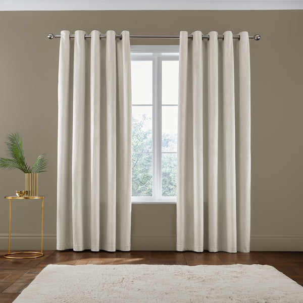 Crafted by Catherine Lansfield, these ready-made eyelet curtains combine sophisticated design with practical functionality. The luxurious matt velvet fabric delivers both visual refinement and tactile comfort, creating an inviting atmosphere in any bedroom. Measuring 66 x 90 inches in a versatile cream tone, they're engineered for effortless installation and reliable performance. British-designed and developed, these curtains represent the brand's commitment to quality craftsmanship and enduring style.