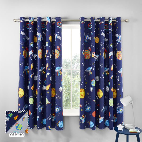 Transform your little one's room with an out of this world design! These fully reversible curtains offer cartoon rockets, planets & astronauts with contrasting colours for versatile, easy bedroom styling. Catherine Lansfield crafts quality & safety standards in compliance with MADE IN GREEN by OEKO-TEX®. Support Better Cotton Farmers with our cotton product via mass balance-may not contain Better Cotton, but farmers benefit!