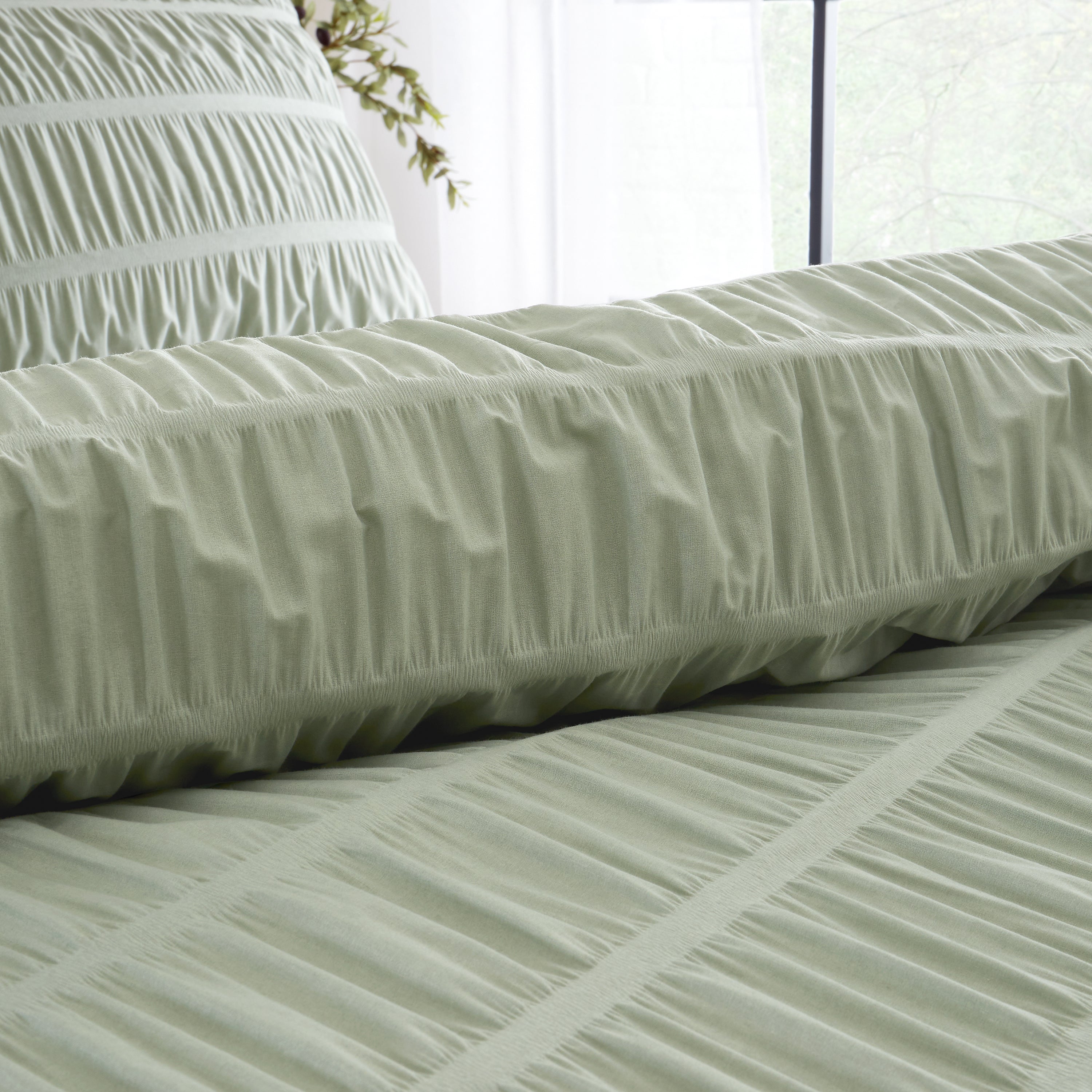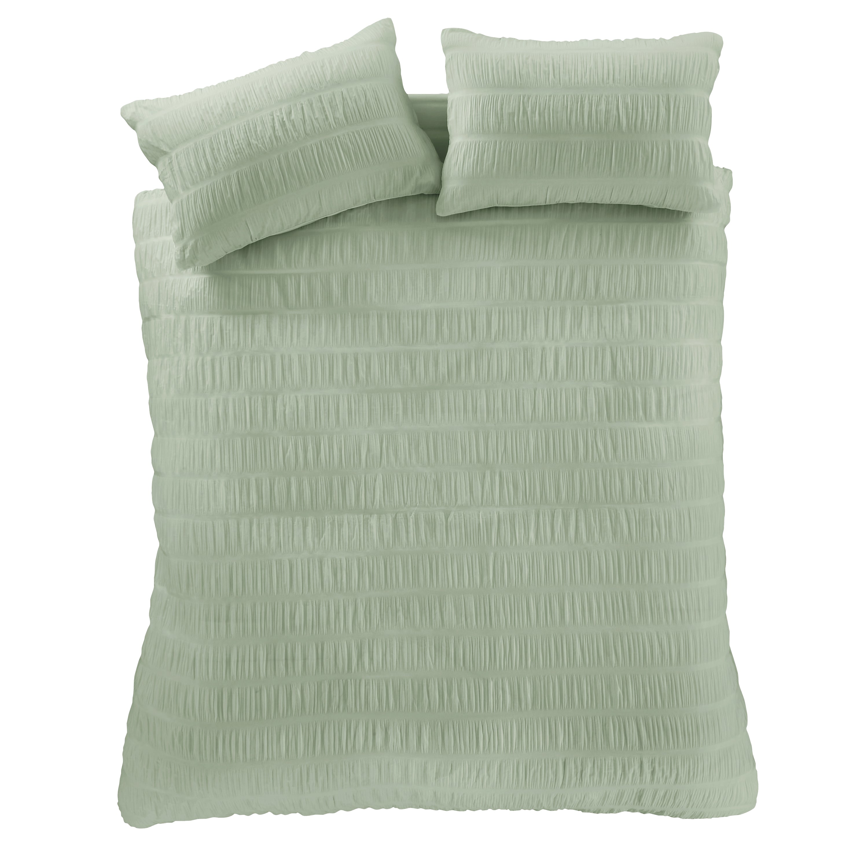 Transform your bedroom with this sophisticated seersucker bedding set, featuring distinctive banded stripes in a calming sage tone. The expertly crafted blend of recycled polyester and cotton delivers both durability and comfort for daily use, whilst remaining refreshingly low-maintenance. Catherine Lansfield's British heritage shines through in every detail, combining timeless design with contemporary sensibility. Certified to STANDARD 100 by OEKO-TEX® standards, this collection meets rigorous quality and environmental benchmarks, ensuring peace of mind alongside aesthetic appeal.