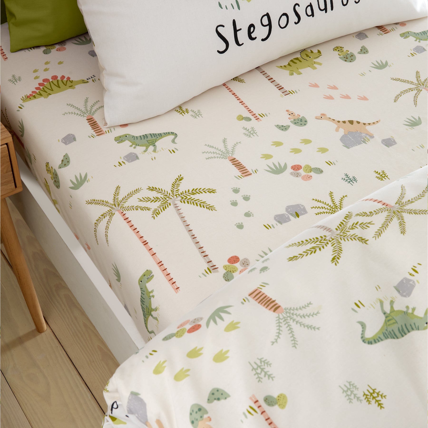 Catherine Lansfield Sleepy Dino Bed Linen Fitted Sheet Green