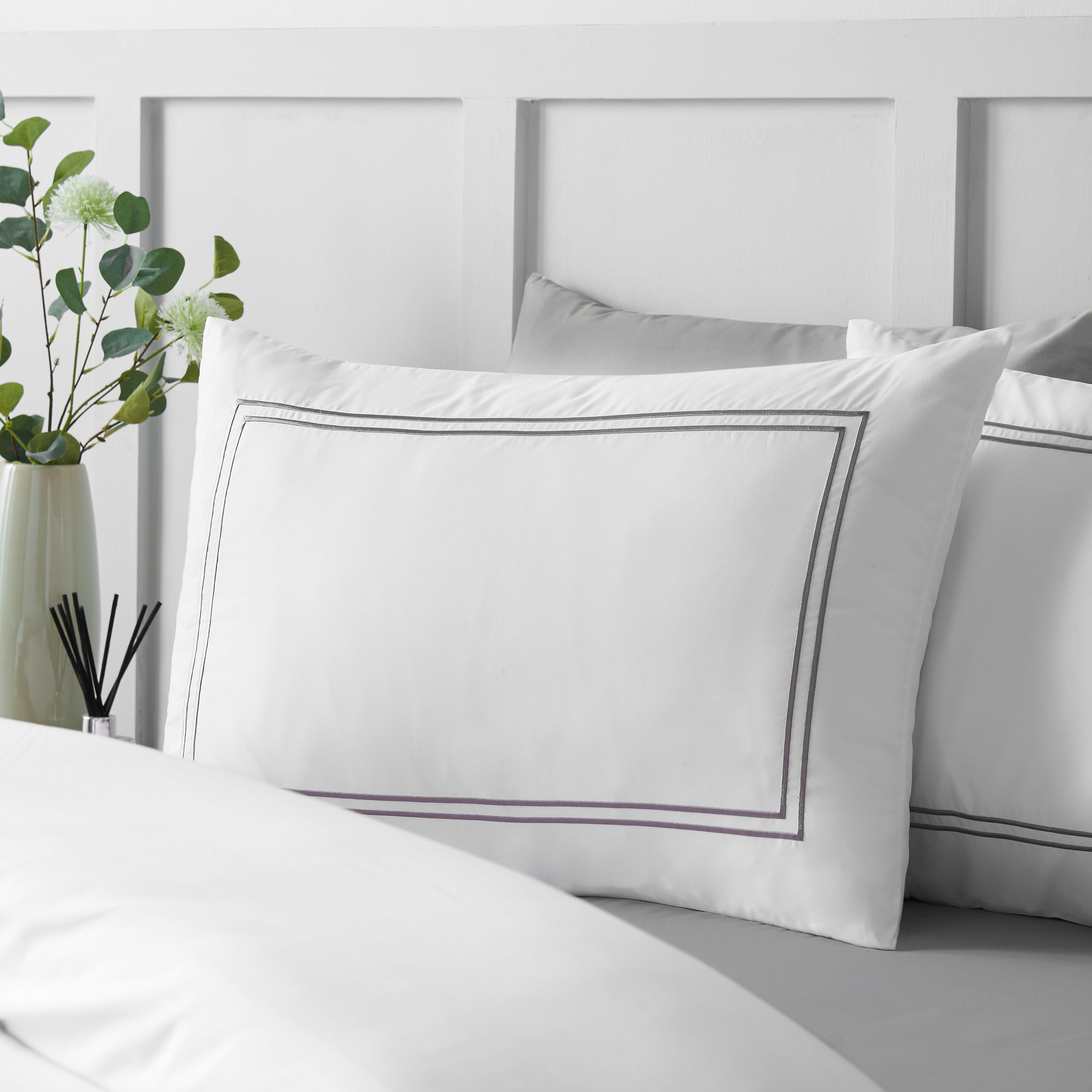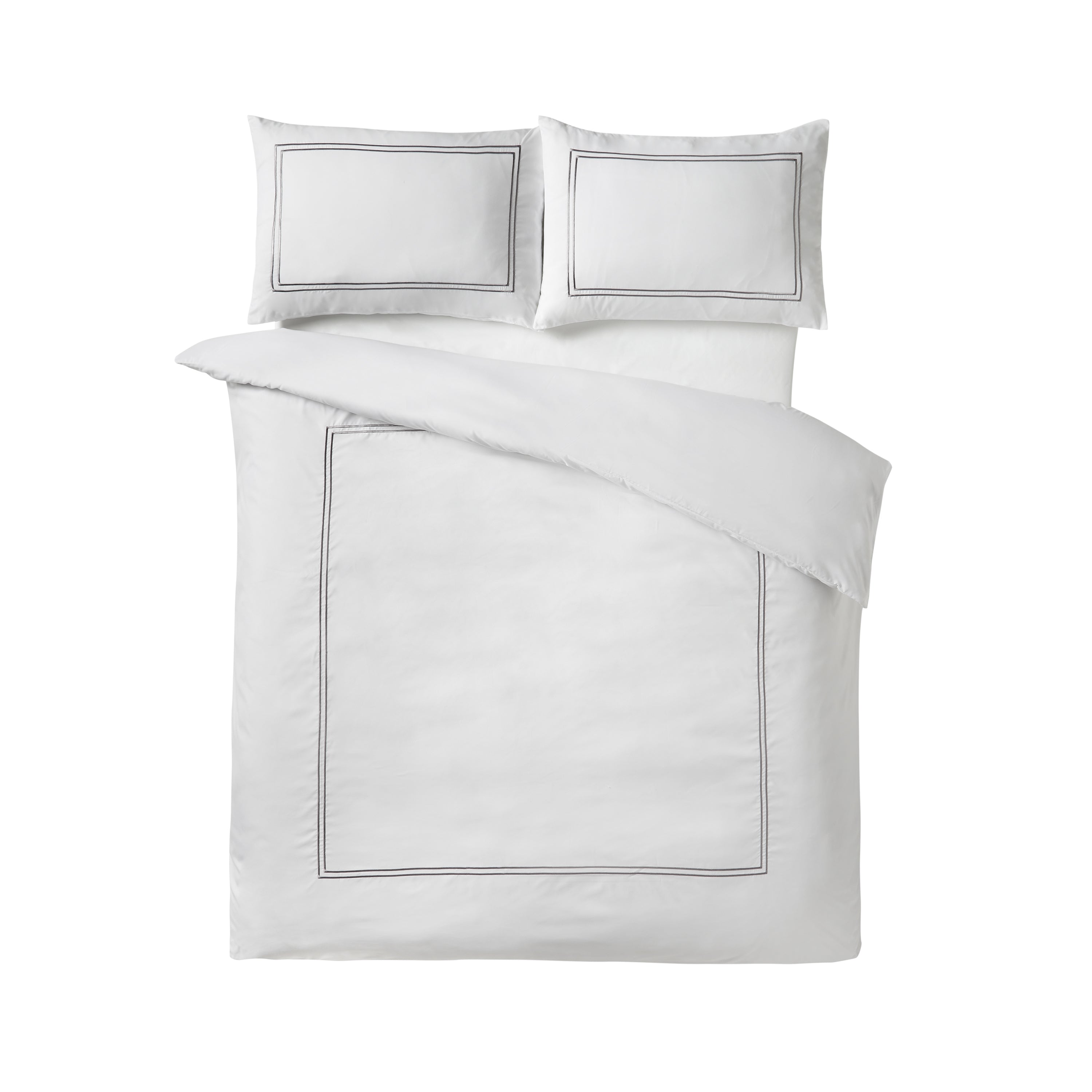 Elevate your bedroom with this refined Catherine Lansfield bedding collection, featuring a pristine white foundation enhanced by delicate embroidered satin stitching along the duvet cover and pillowcases. The understated design delivers sophisticated elegance whilst maintaining practical everyday functionality. Crafted from microfibre, this set resists wrinkles and dries rapidly, streamlining your laundry routine without compromising on quality. Engineered to STANDARD 100 by OEKO-TEX® standards, it meets rigorous safety and environmental specifications. A British-designed piece that combines timeless aesthetics with dependable performance for discerning homeowners seeking both style and substance.