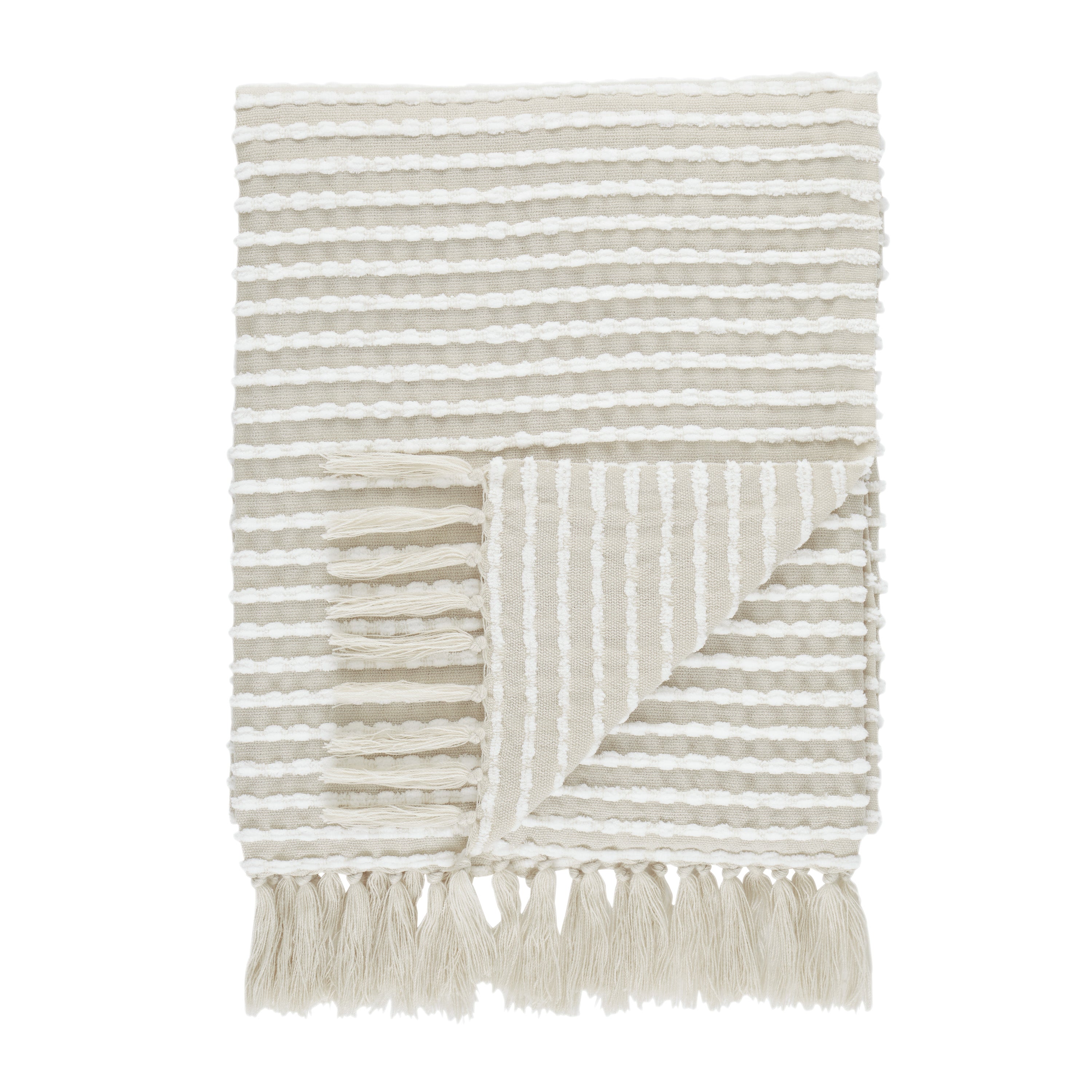 Catherine Lansfield Stab Stitch 125cm x 150cm Tassel Throw Neutral