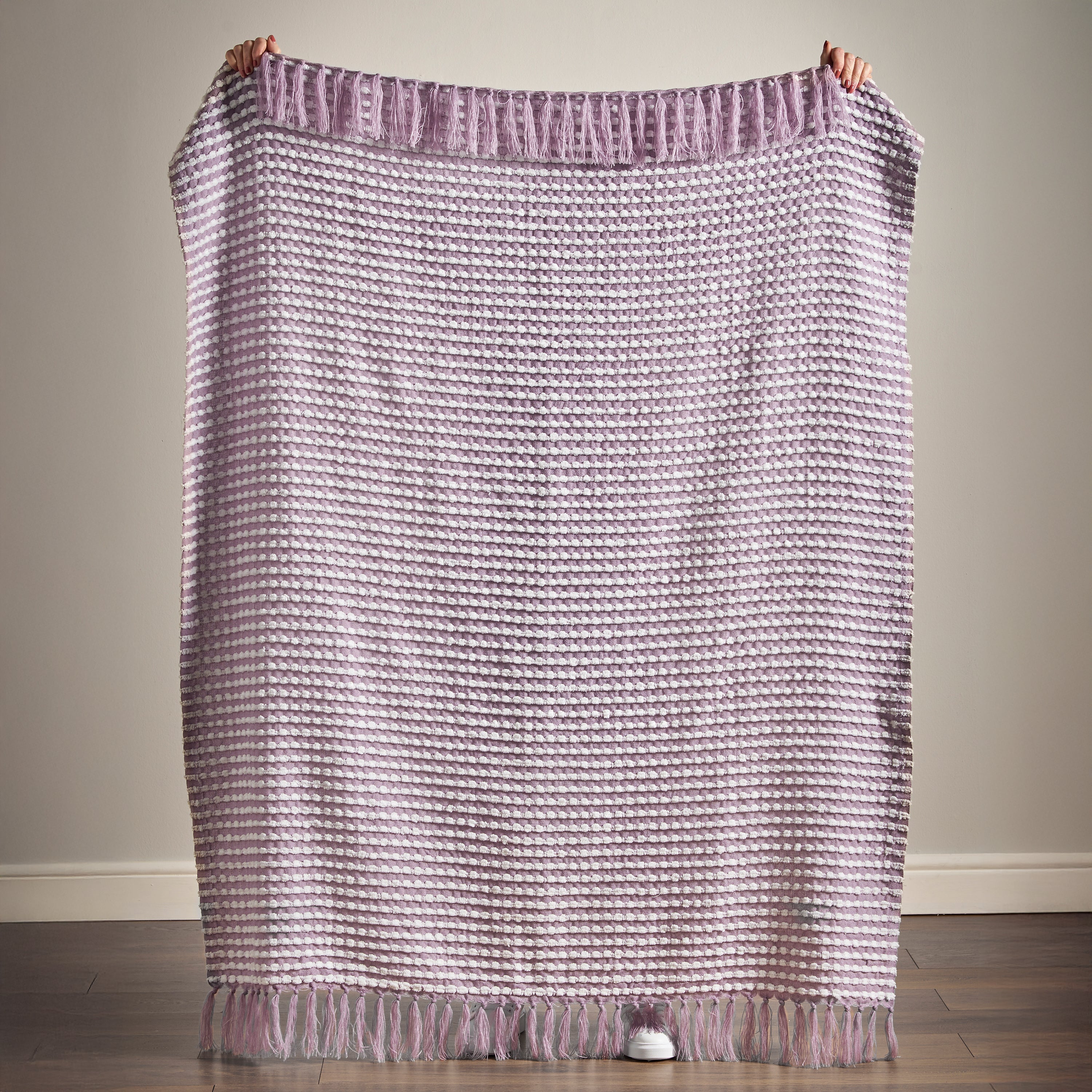 Catherine Lansfield Stab Stitch 125cm x 150cm Tassel Throw Purple