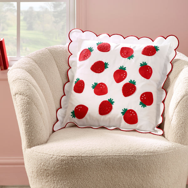 Elevate your interior with this expertly crafted strawberry cushion from Catherine Lansfield, a British design house celebrated for quality and sophistication. Measuring 45cm x 45cm, this piece features vibrant red strawberries set against a refined backdrop, complemented by an elegant scalloped trim in contrasting detail. The design captures the essence of summer whilst maintaining a polished aesthetic suitable for contemporary and traditional spaces alike. A thoughtfully curated accent that brings both visual interest and a touch of botanical charm to any room.