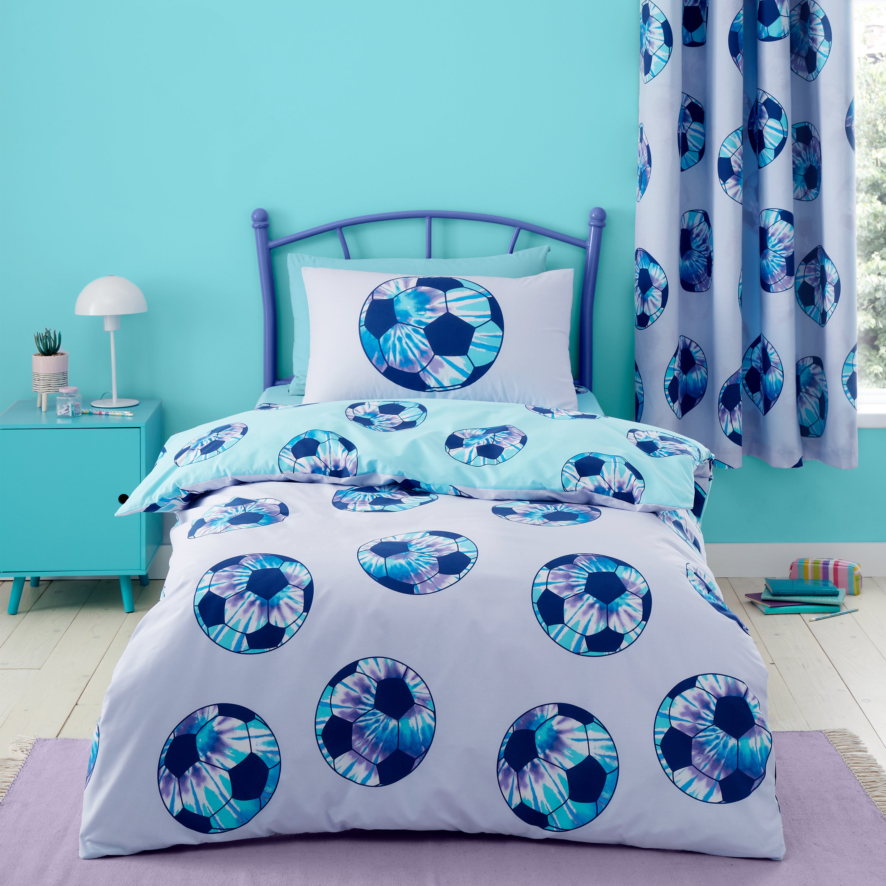 Create a space where the dreams of football and unyielding determination elegantly converge. Tie-dye soccer balls and empowering phrases adorn a vibrant, textured base. Reversible and environmentally friendly, this bedding set is a blend of recycled polyester and responsibly sourced soft cotton, ideal for everyday use. Catherine Lansfield is renowned for its refined elegance and exceptional craftsmanship, expertly made in Great Britain.