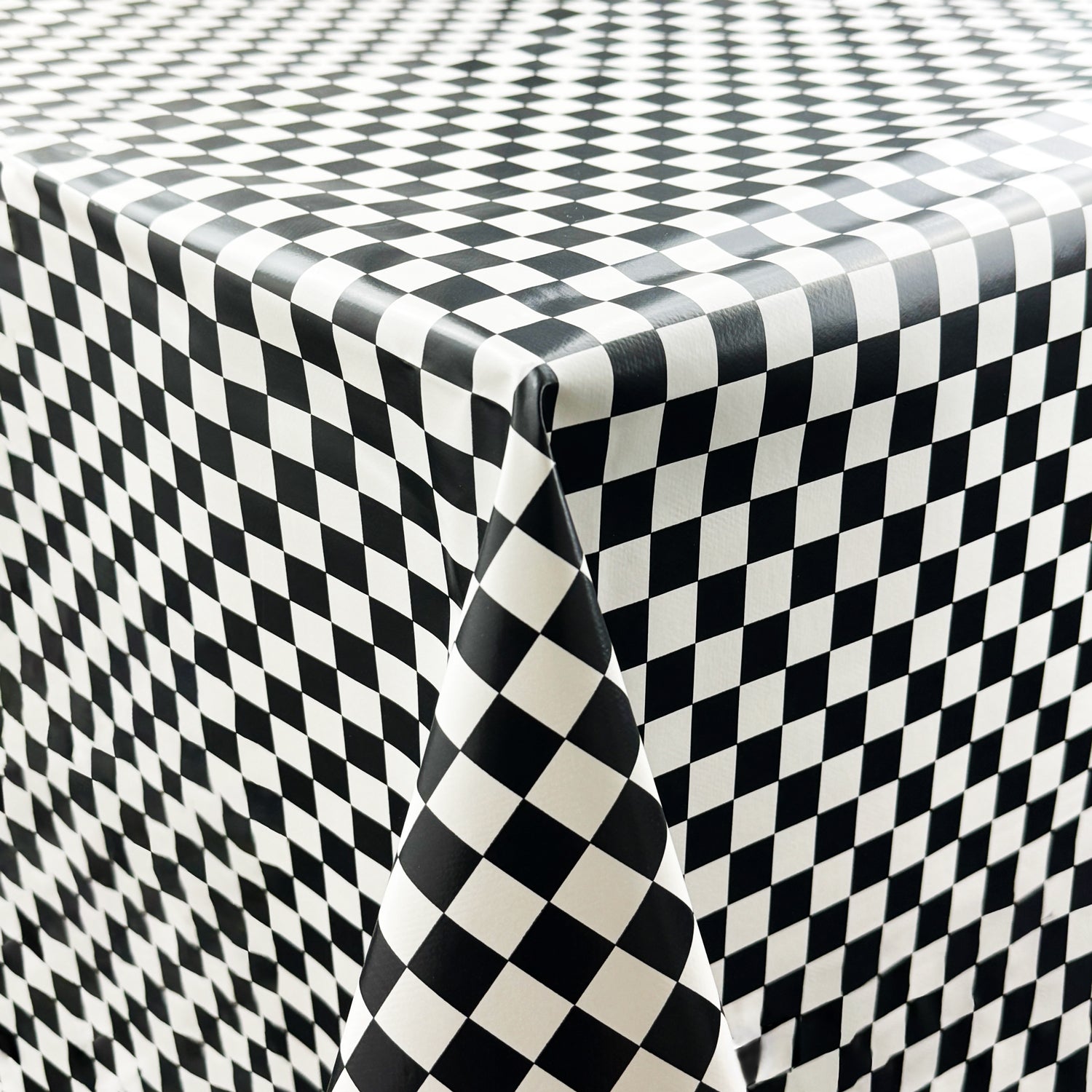 Indulge in the stunning 100% polyester checkered PVC for your kitchen, outdoor tables, and playroom decoration. With its modern design, not only does it add flair, but it also safeguards your surfaces. This exquisite fabric is easy to wipe clean, featuring a subtle embossing and luxurious velvet-like texture that drapes and folds with grace.