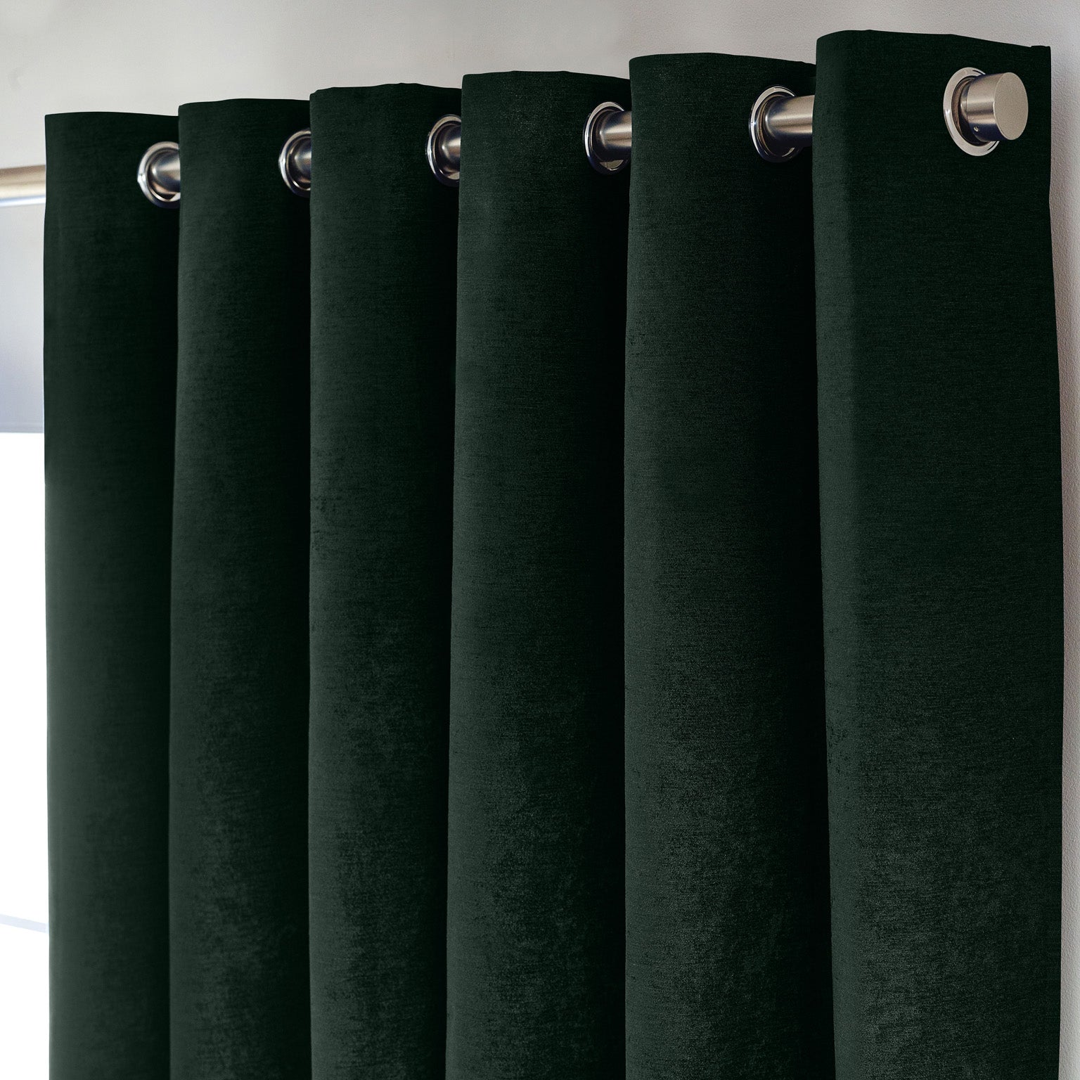 These sophisticated green chenille curtains feature a triple-woven construction engineered for exceptional light exclusion, making them particularly suited to bedrooms, nurseries, and home cinemas. The luxurious chenille weave delivers both visual richness and tactile appeal, whilst the integrated blackout lining works to regulate room temperature and reduce external noise. Pre-fitted with eyelets for straightforward installation, they provide a contemporary aesthetic without compromising on performance. An investment in both comfort and refined interior design.