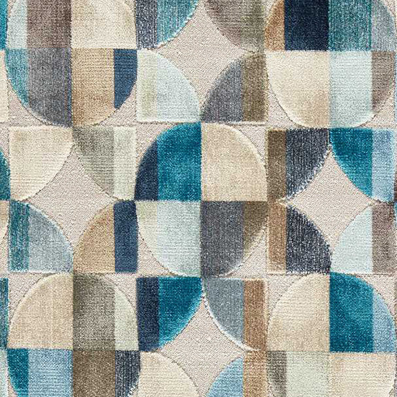 A bold, enticing design, Delaunay combines a variety of circular patterns in a striking array of colour combinations. Raised velvet shapes contrast against a woven ground, highlighting the fabric's retro feel.