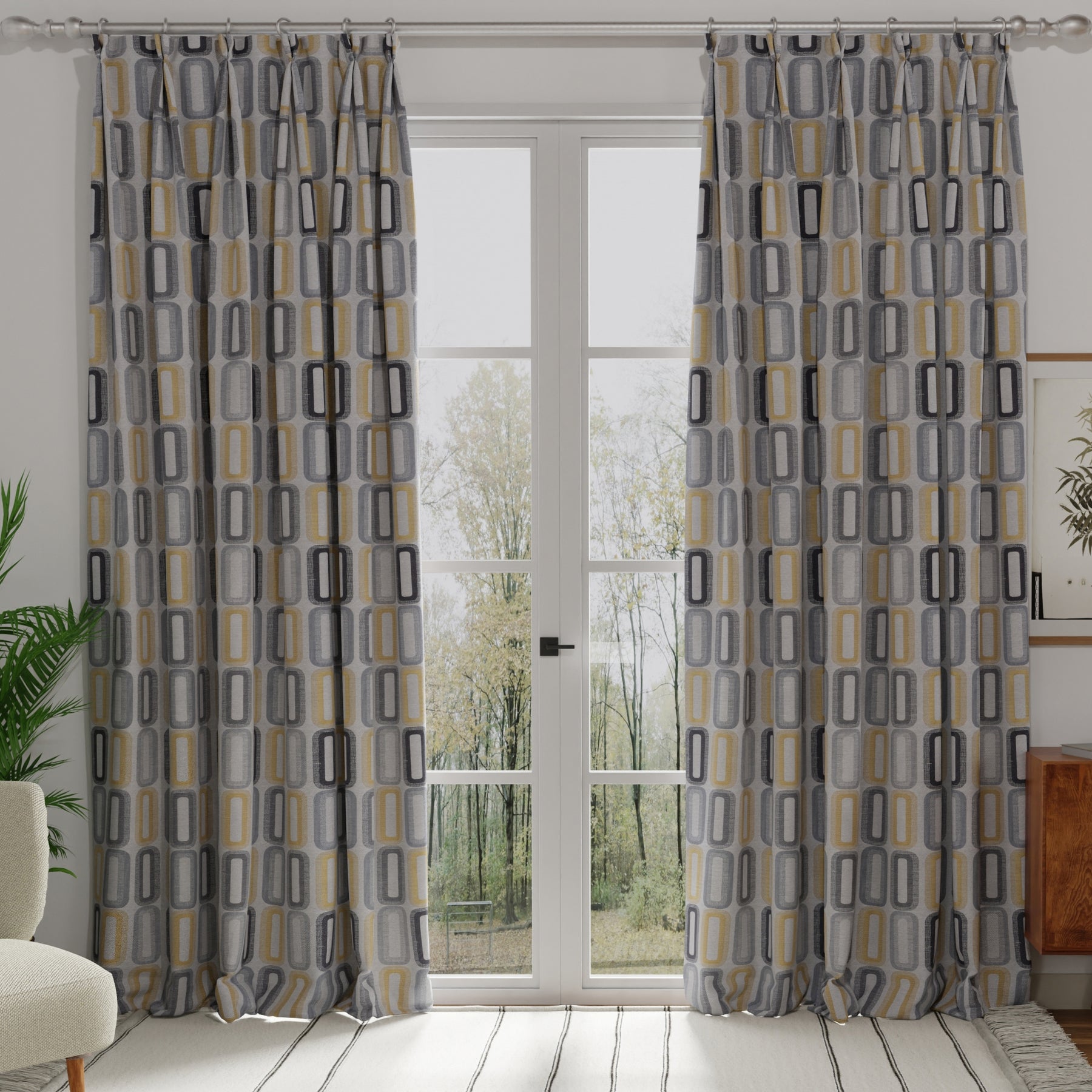 The Dahl curtain fabric has a light stone coloured background and features a series of yellow ochre and grey oval motifs. This contemporary material is sure to create a striking statement in your chosen window treatment, as full length curtains and blinds the Dahl material is eye catching and a perfect choice to introduce subtle masculine tones to your decor.