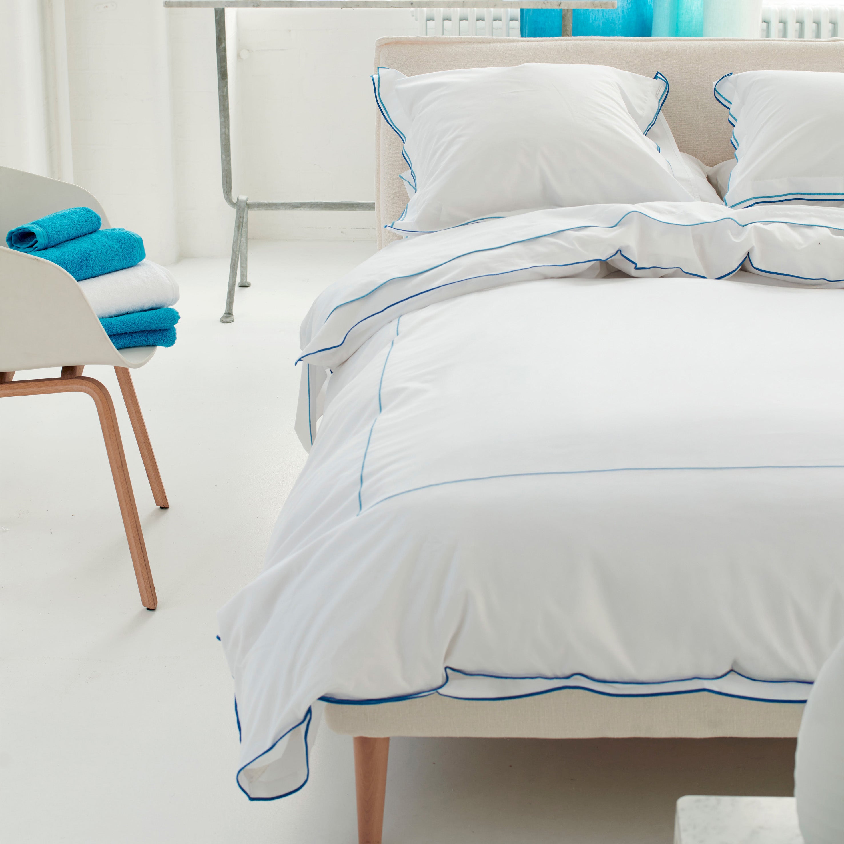 Experience hotel-quality comfort with this 400 thread count cotton percale bedding collection from Designers Guild. The cobalt blue palette showcases refined embroidered detailing across the duvet cover and Oxford pillowcases, with an elegant frame design and decorative edging that elevates your bedroom aesthetic. Crafted from premium percale cotton, this set delivers the crisp, breathable finish synonymous with luxury hospitality, combining durability with sophisticated style for discerning homeowners seeking enduring quality and elegance.