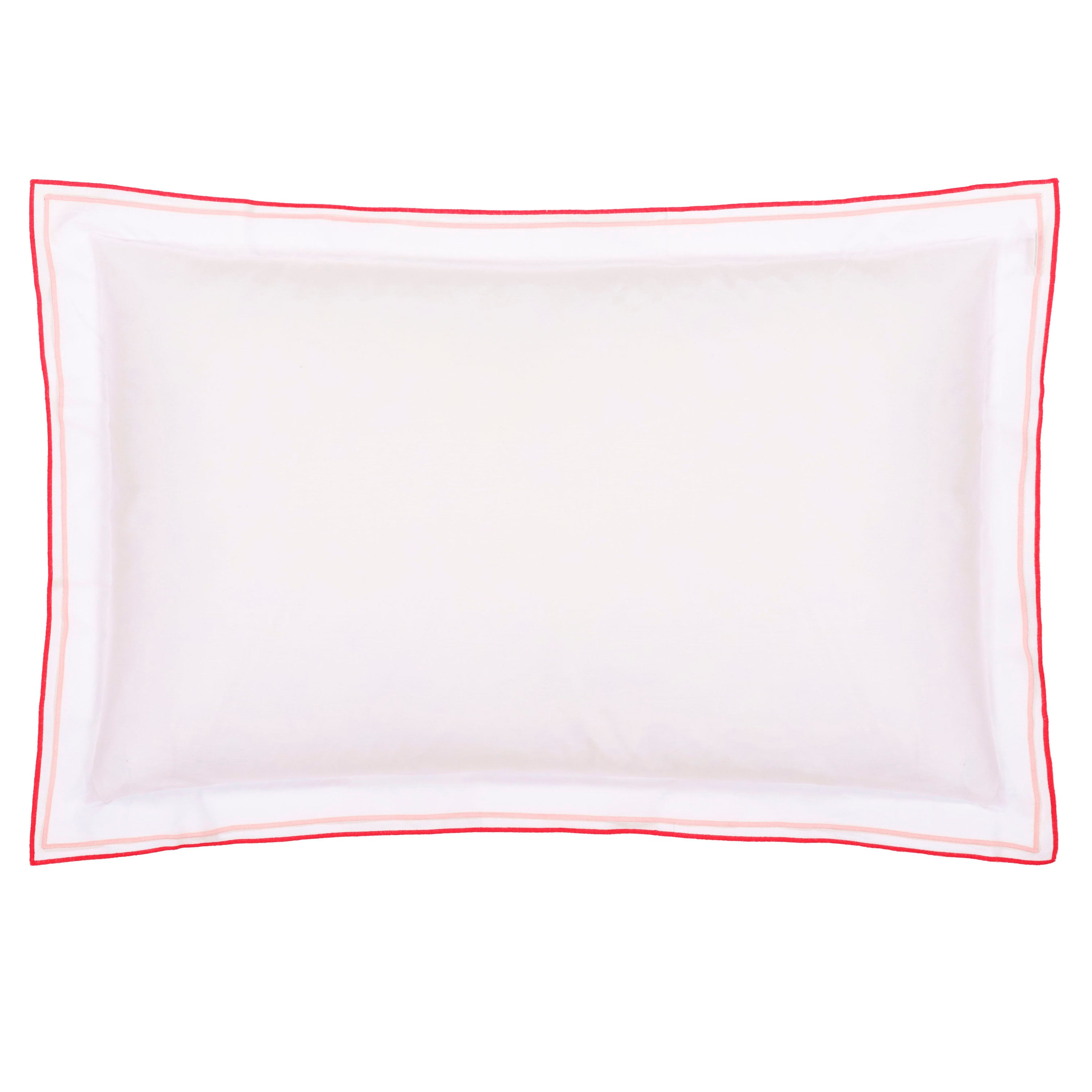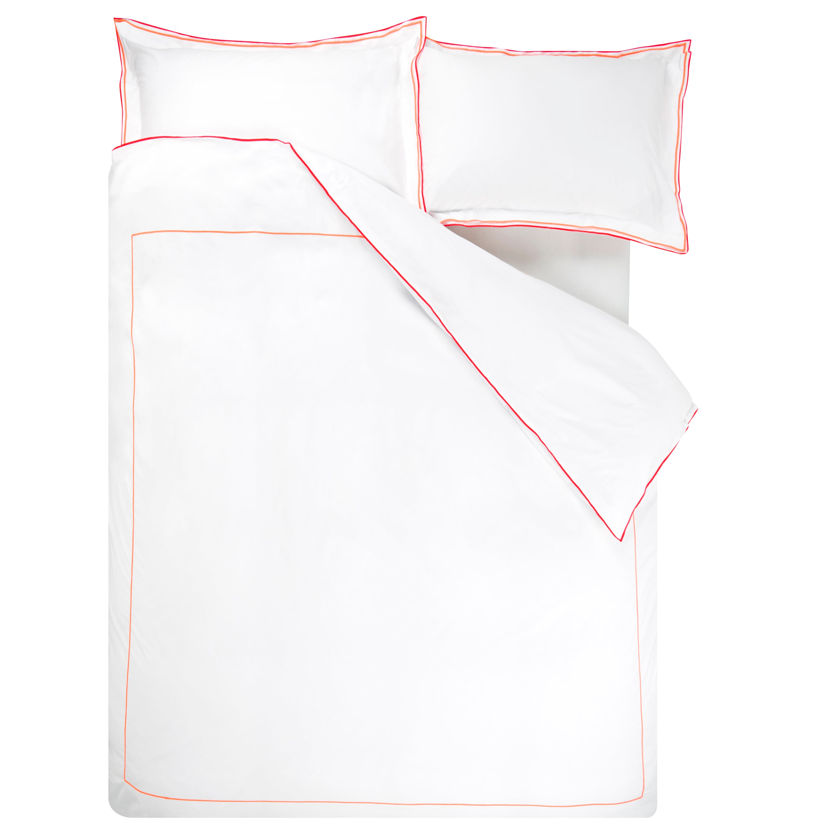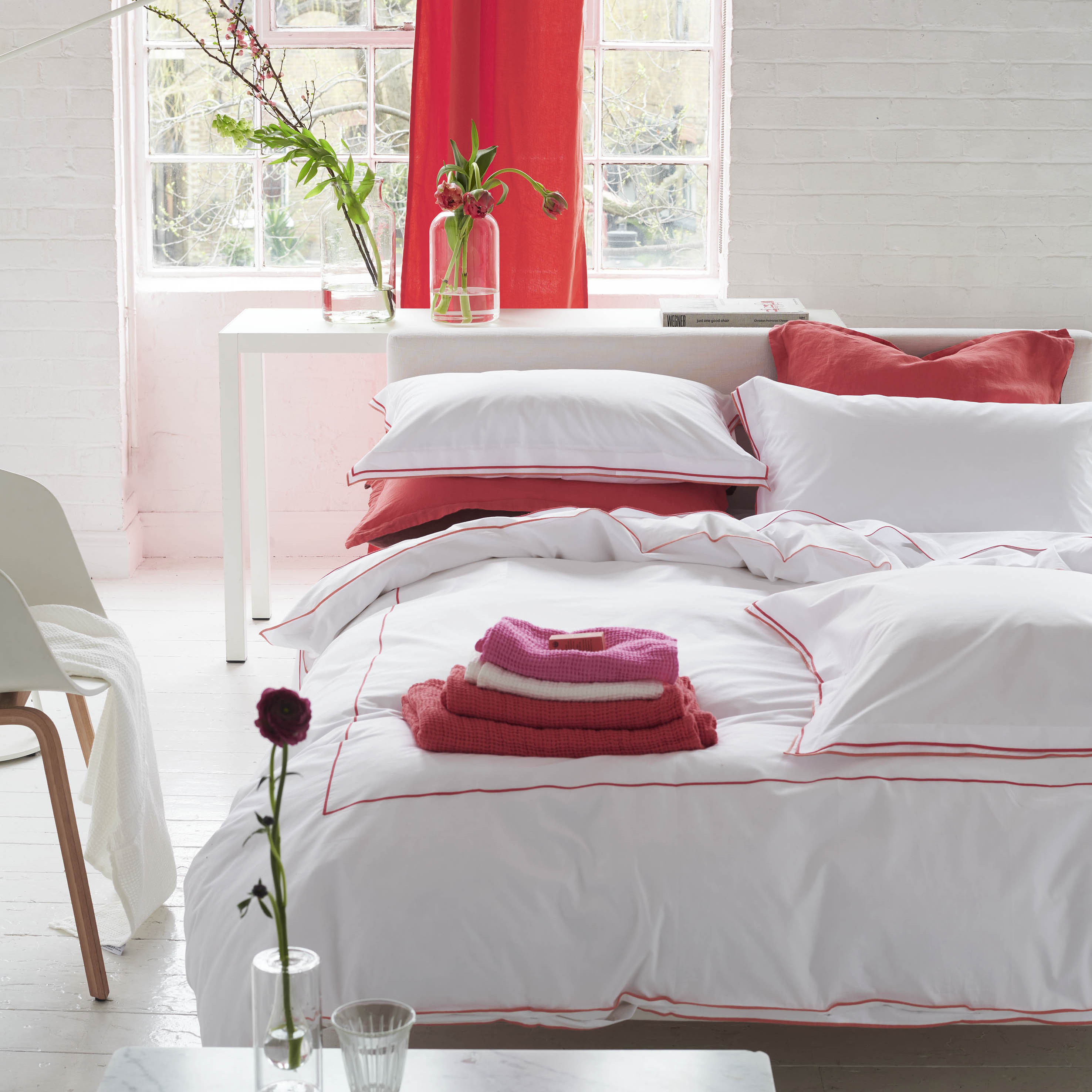 Our beautiful 400 thread count cotton percale bed linen, a quality you would expect to find in a luxurious hotel. Crisp, plain white with sophisticated, embroidered detailing in two complementary shades features on the double-edged Oxford pillowcase. The duvet cover features a co-ordinating, embroidered frame design and embroidered edging for a stylish look. This bedding brings five-star style to your bedroom.