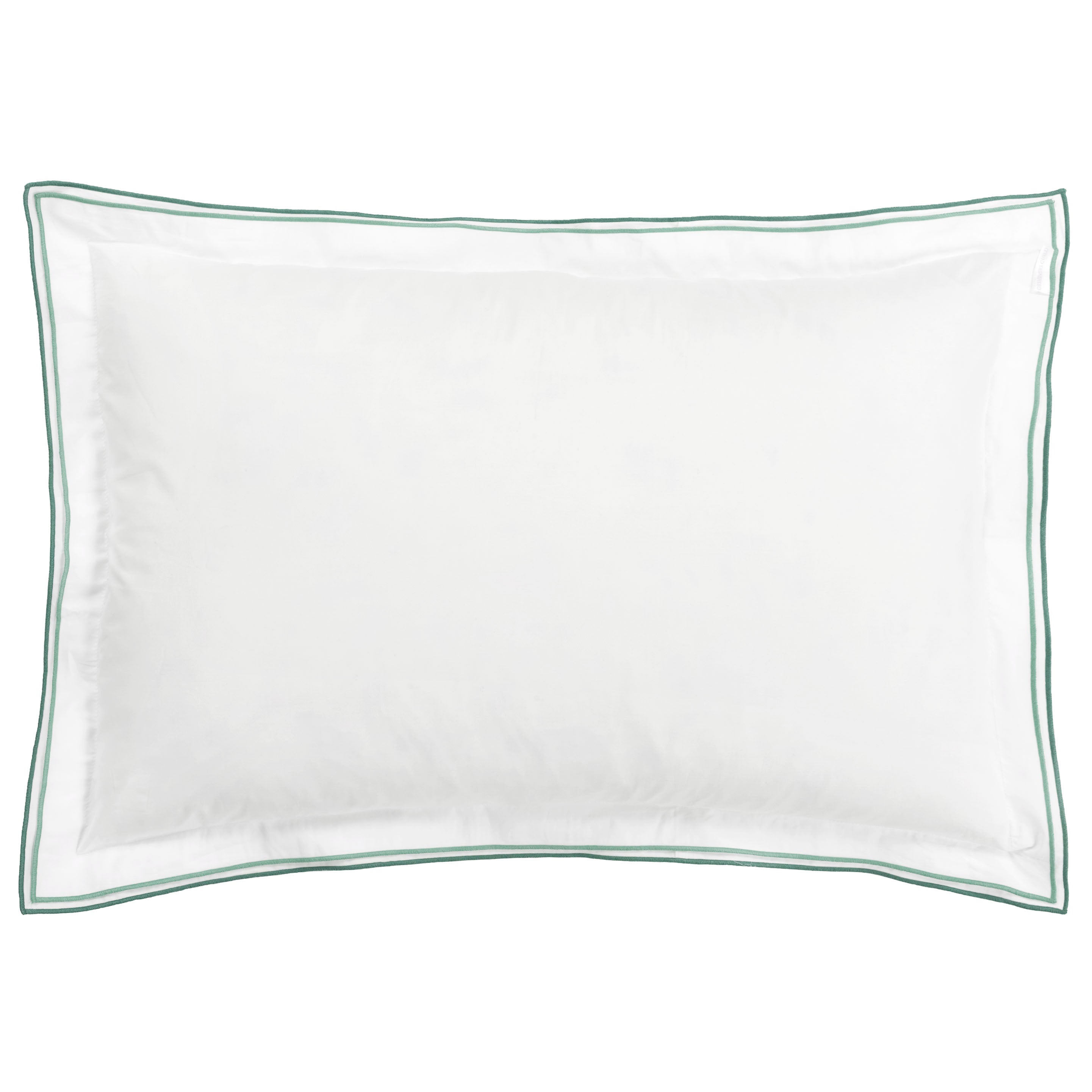 Elevate your bedroom with this premium 400 thread count cotton percale bedding collection from Designers Guild. Crafted to hotel standards, the porcelain green duvet cover showcases an elegant embroidered frame design with matching edged detailing, whilst the coordinating Oxford pillowcases feature refined two-tone embroidery on a crisp base. The sophisticated construction and thoughtful design elements deliver understated luxury and enduring comfort, transforming your sleep space into a sanctuary of refined elegance.